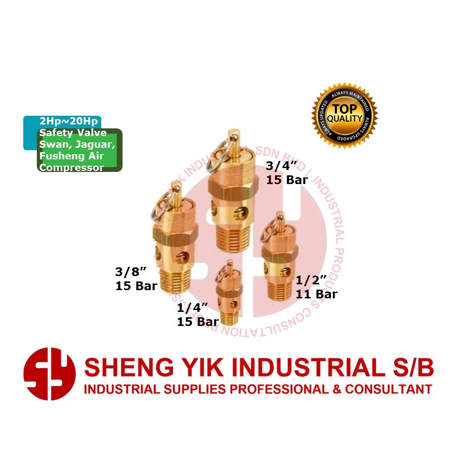 SYI 11BAR, 15BAR, 35BAR BRASS PRESSURE RELIEF VALVES SAFETY VALVE FOR SWAN JAGUAR FUSHENG 2HP TO 20HP AIR COMPRESSOR
