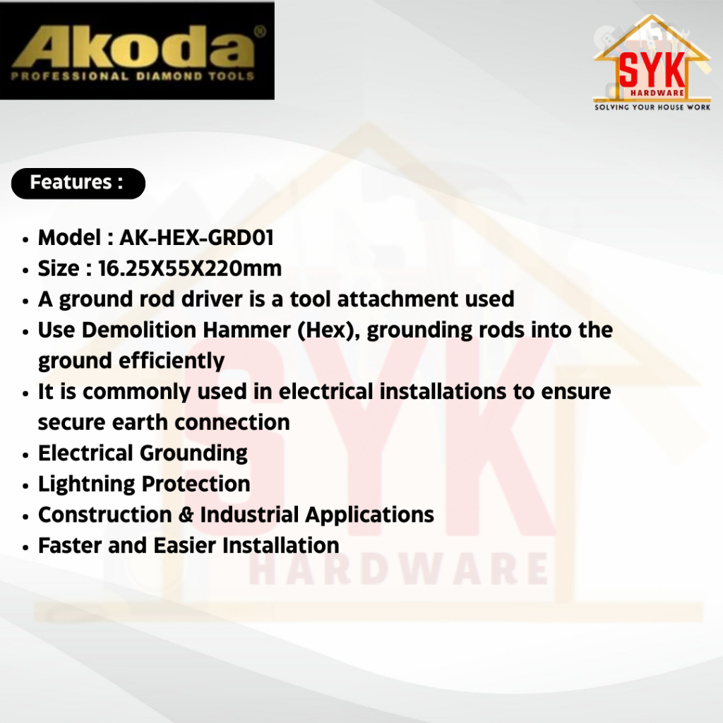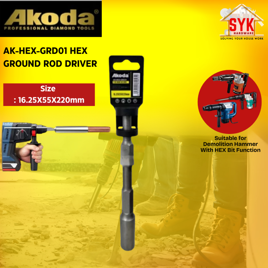 SYK Akoda AK-HEX-GRD01 17 Hex Ground Rod Driver for Hacker Demolition Hammer Machine Concrete Heavy Duty