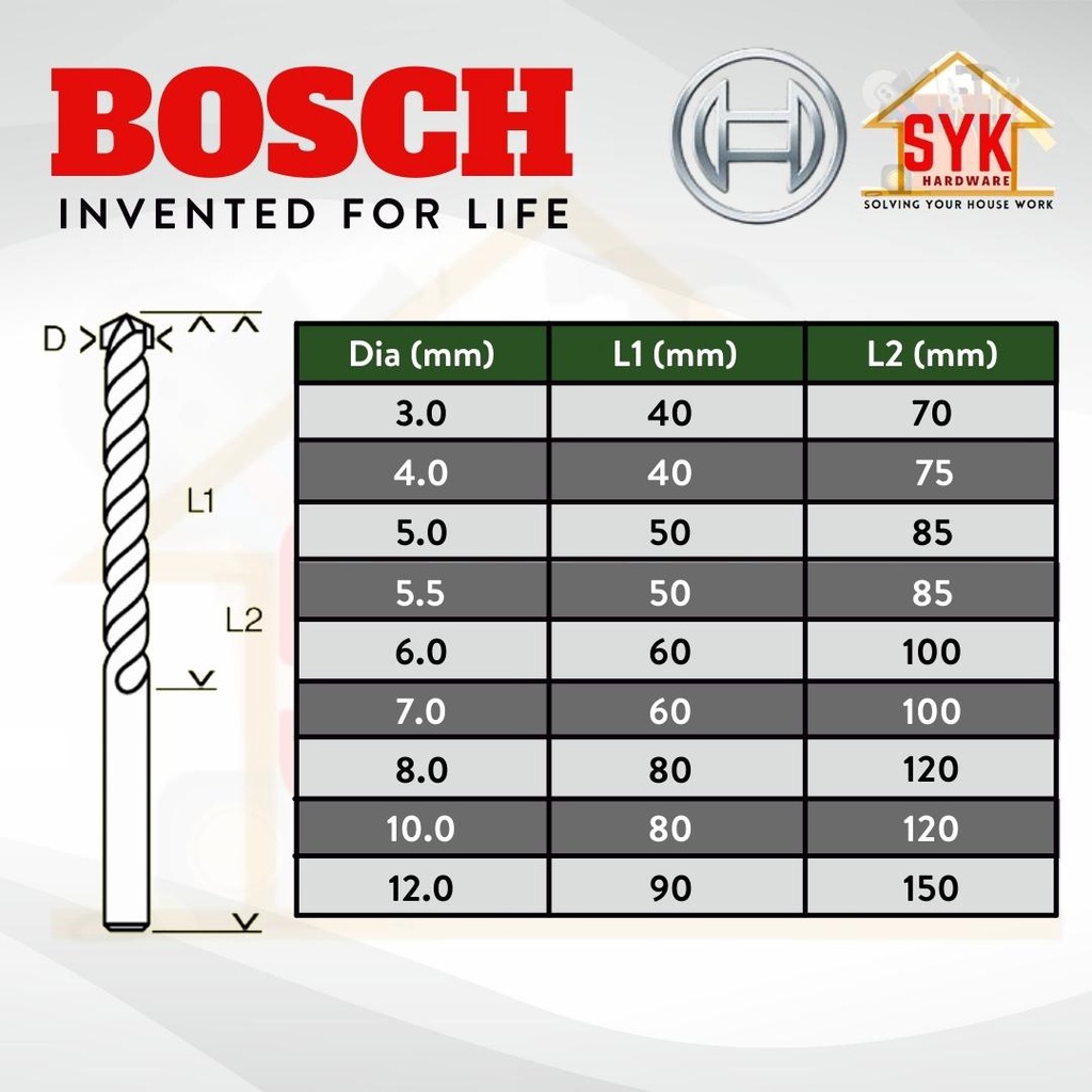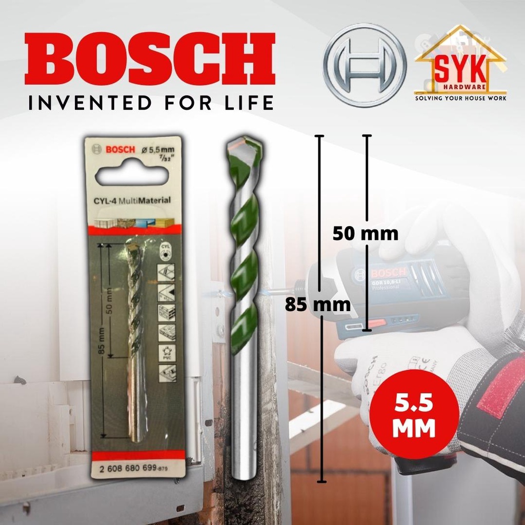 SYK BOSCH Drill Bit (3mm-12mm) CYL-4 Multipurpose Drill Bits Set Drll Accessories Drill Bit Concrete Mata Drill Besi