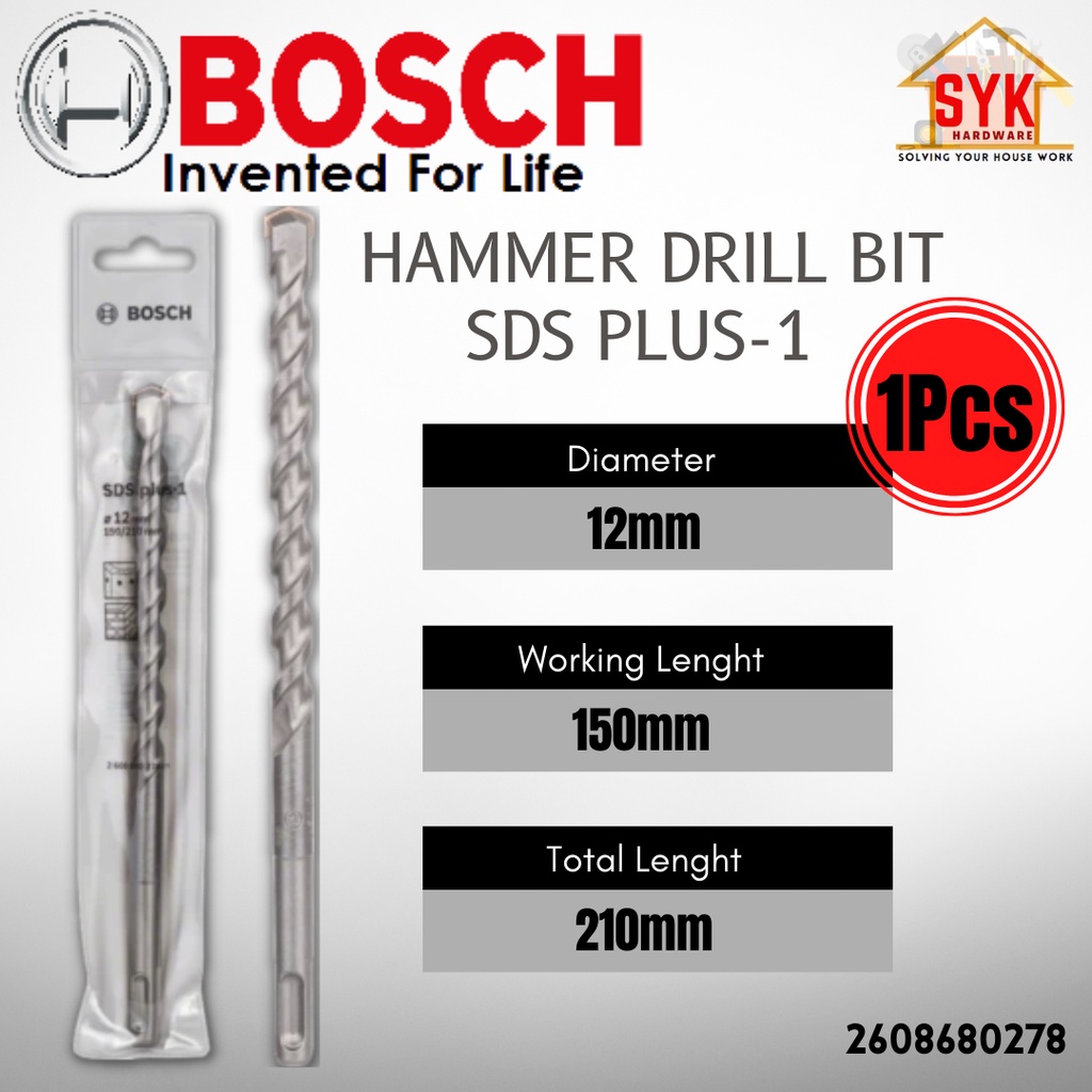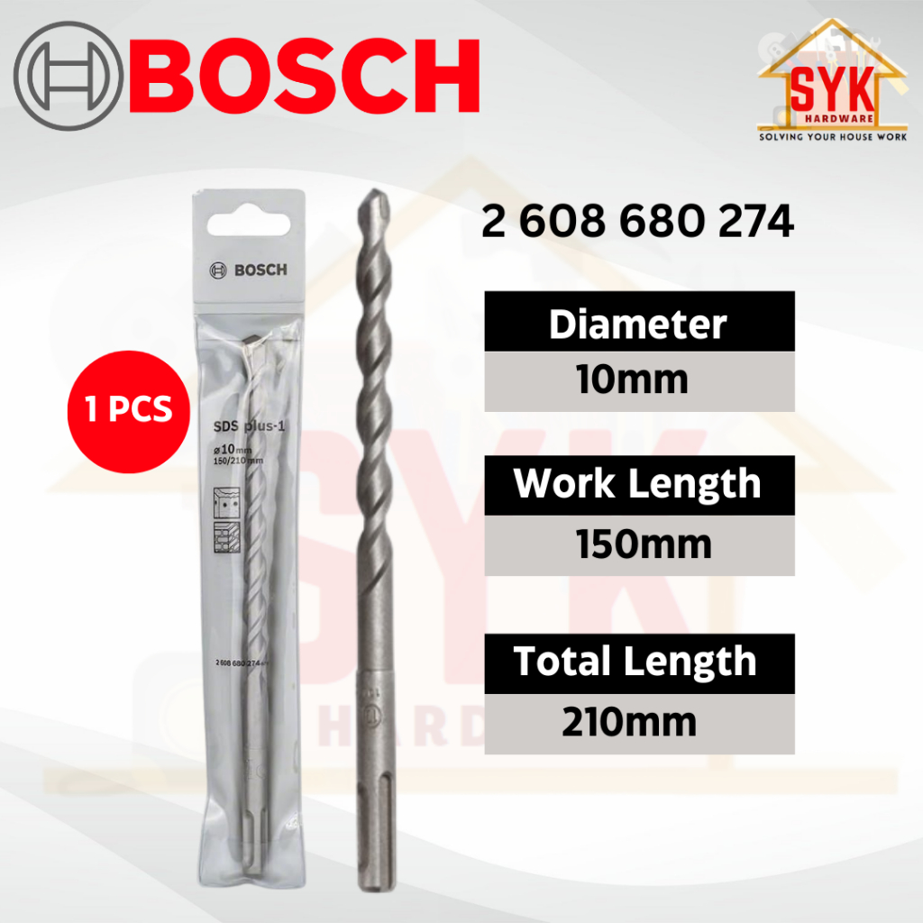 SYK BOSCH SDS-PLUS-1 Drill Bit Masonry & Concrete Drill Bit Drill Accessories Mata Drill Konkrit Mata Drill Batu