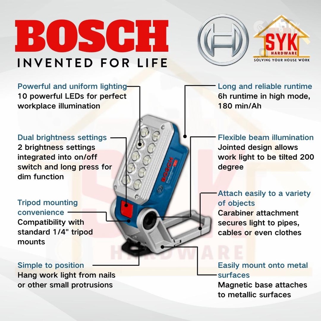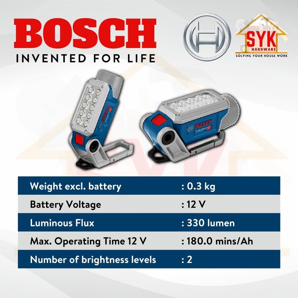 SYK Bosch GLI 12V-330 GLI12V-330 12V LED Torchlight Lamp Solo Lampu Kerja Lampu Suluh LED Torch Light-06014A0000