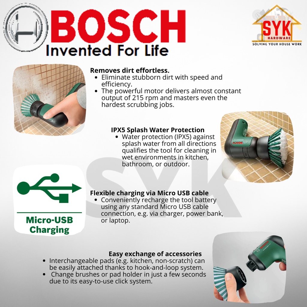 SYK Bosch Universal Brush 3.6V Electric Cordless Cleaning Brush Multipurpose Brush Scrubbing Cleaning Brush 06033E0050