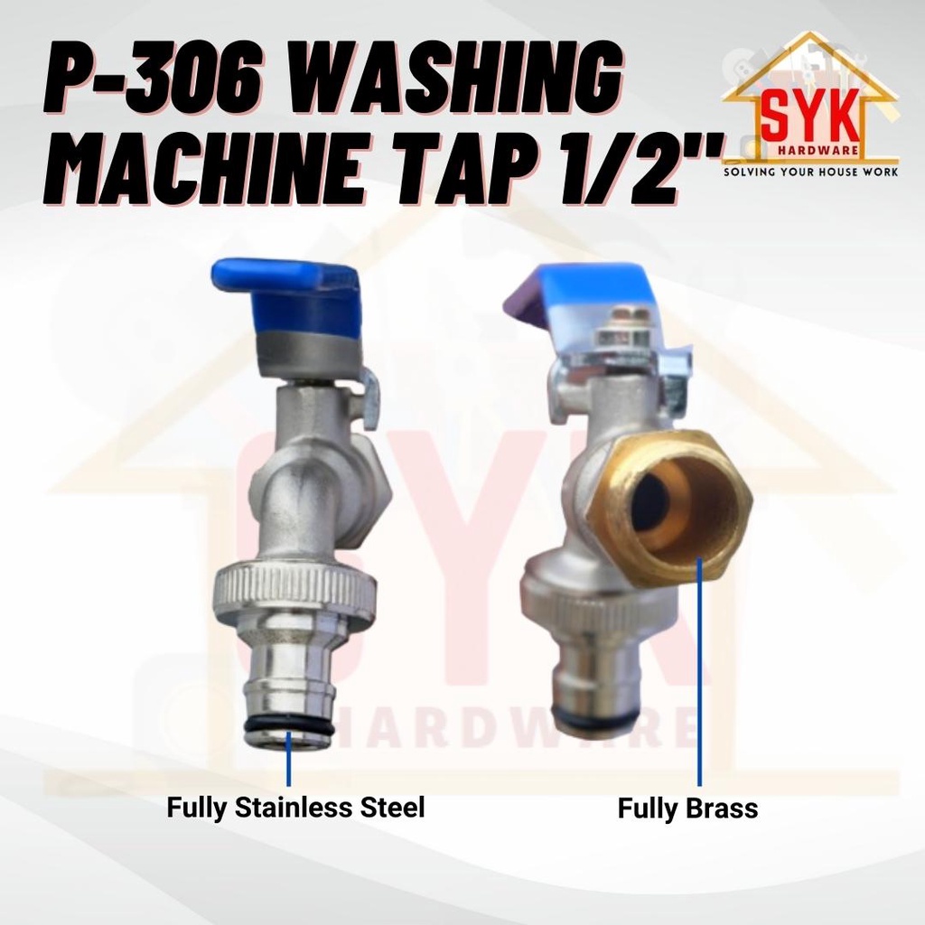 SYK Brass Ballcock Washing Machine Tap Stainless Steel 1/2" P-306 Water Tap Kitchen Wall Faucet Kepala Mesin Basuh