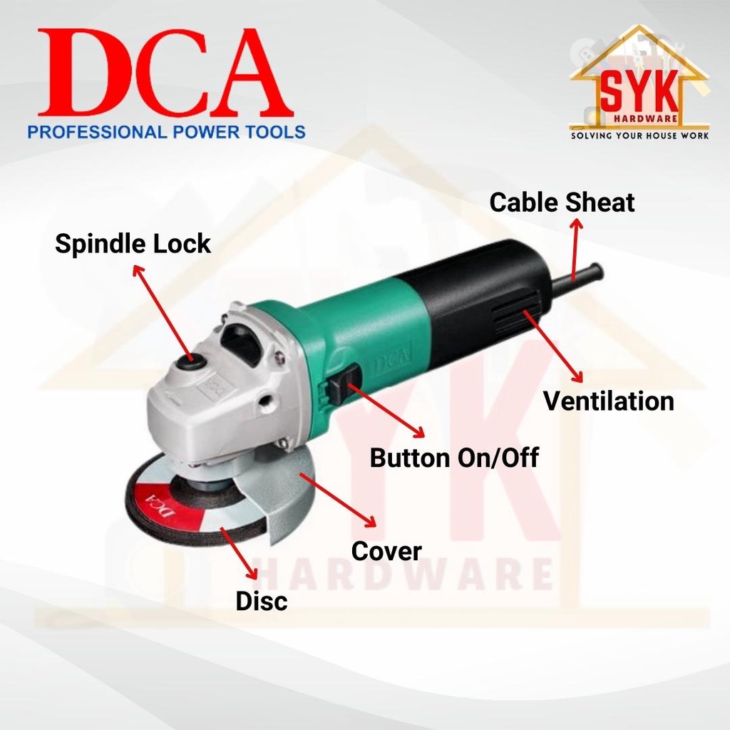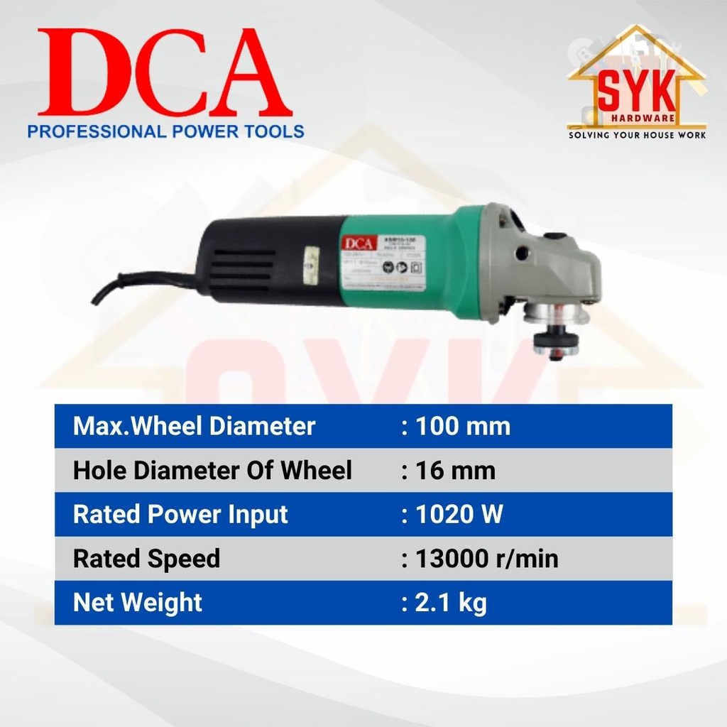 SYK DCA ASM10-100 Electric Angle Portable Hand Grinder Machine Polish Speed Control Canai Mesin Grinder