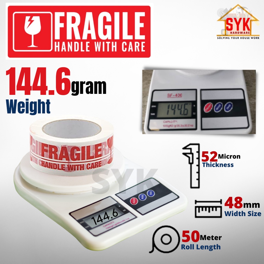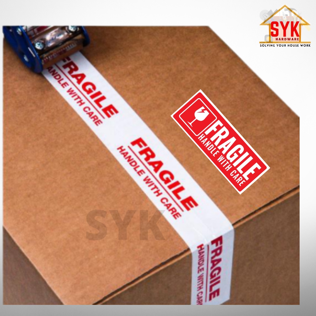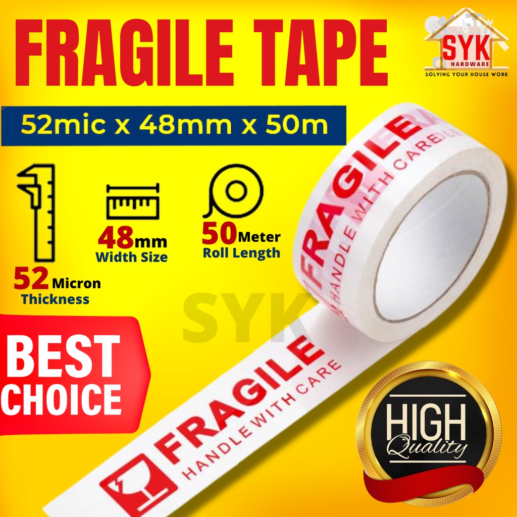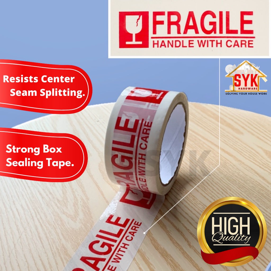 SYK Fragile OPP Tape High Quality Product Security / White Red Tape / Packing Tape / Pita Anti Pecah (48mm X 50meter)