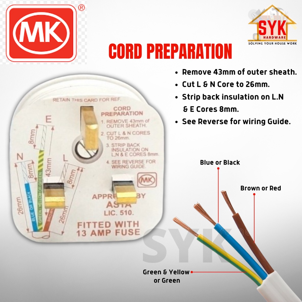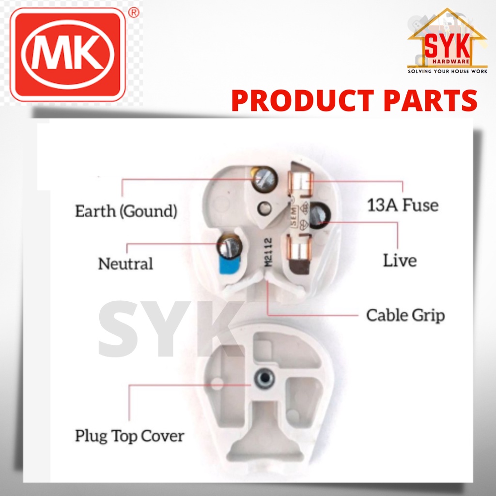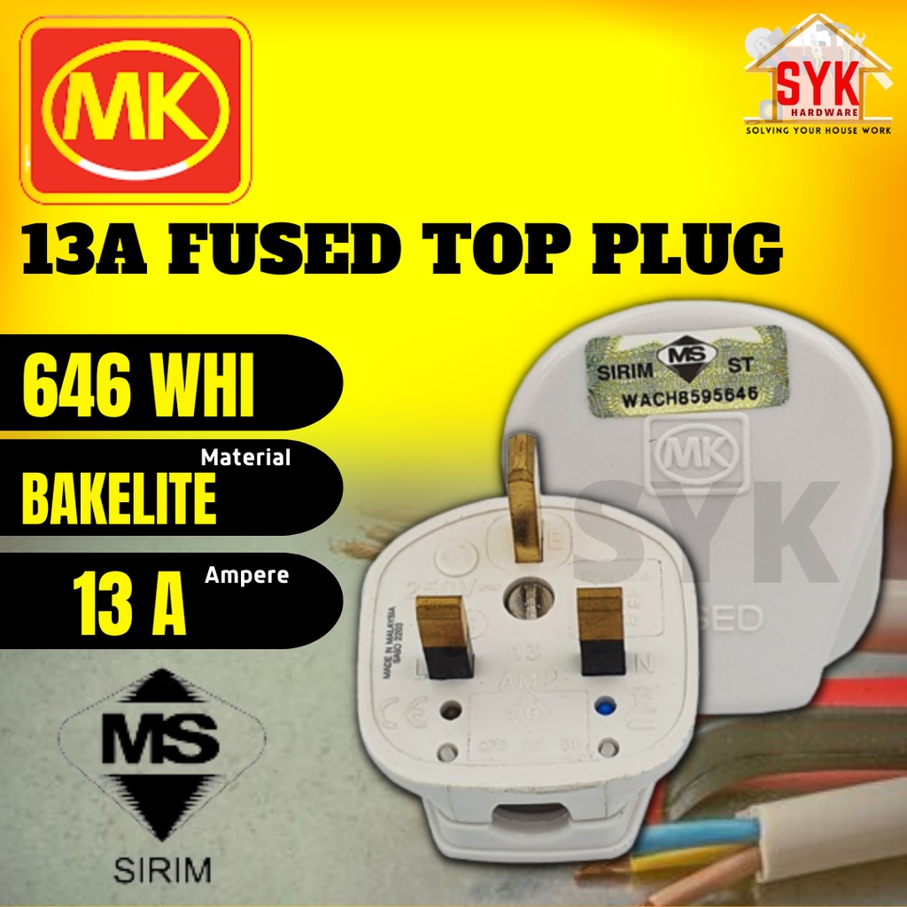 SYK MK 646 WHI 13A Heavy Duty 3 Pin Bakelite Fused Top Plug Kepala Plug 250V SIRIM Approved (1 Piece)