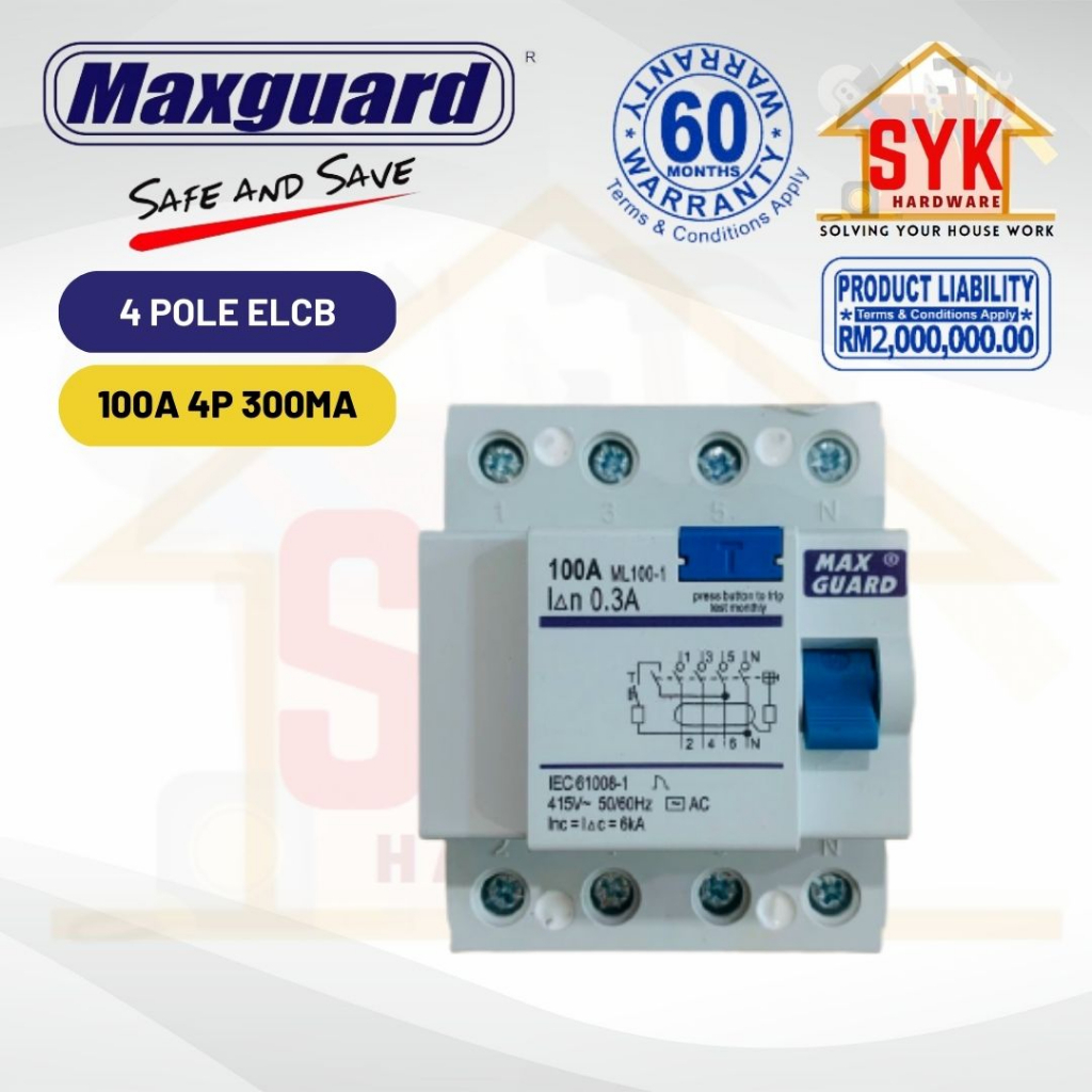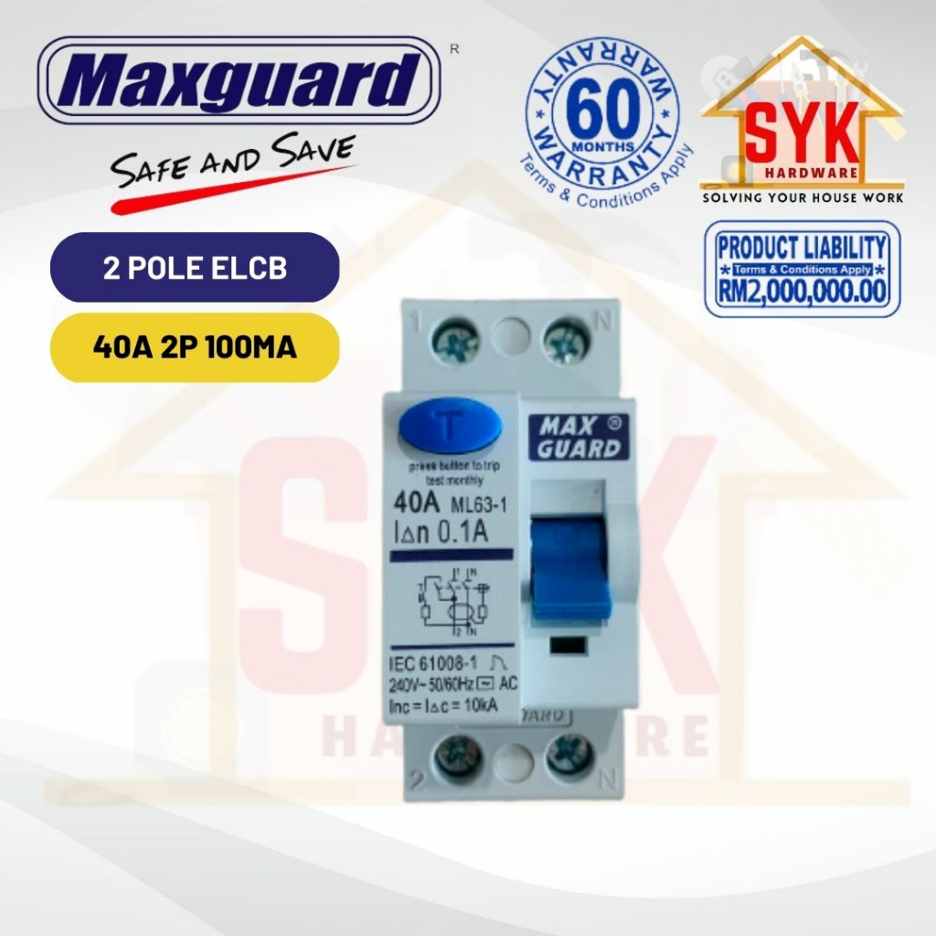 SYK Maxguard Residual Current Operated Circuit Breakers ELCB RCCB 2 Pole 4 Pole ML63 ML100 25A 40A 63A 100A