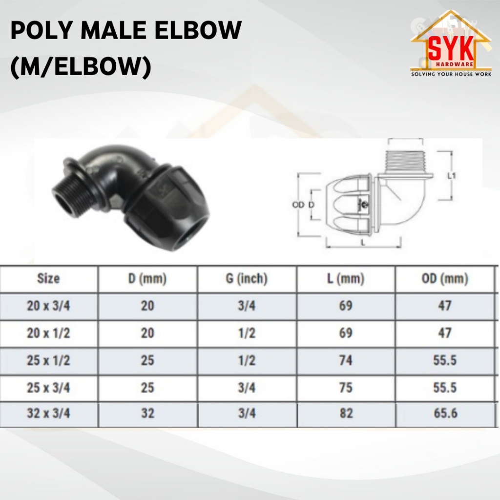 SYK Poly Fitting MTA FTA Female Elbow Male Tee Poly Pipe Connector HDPE Sambungan Paip Air Accessories