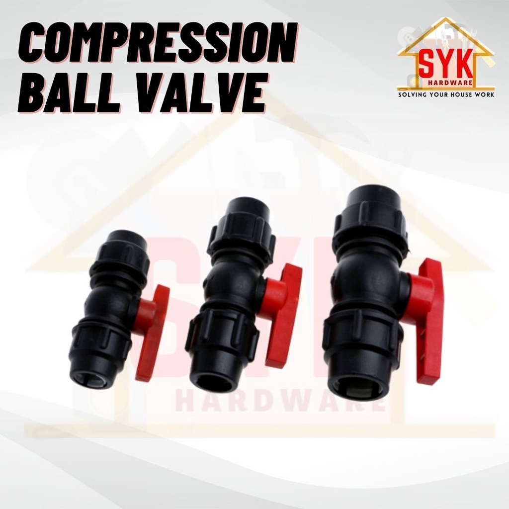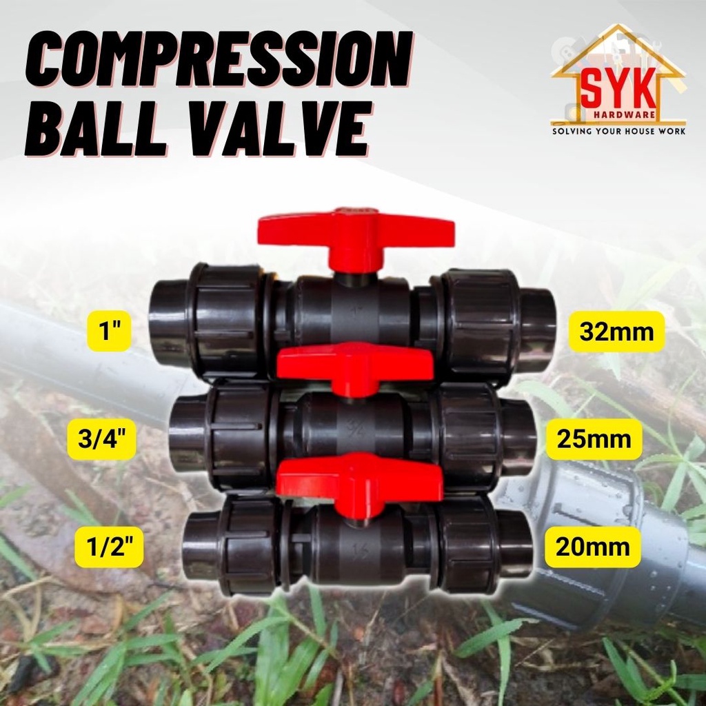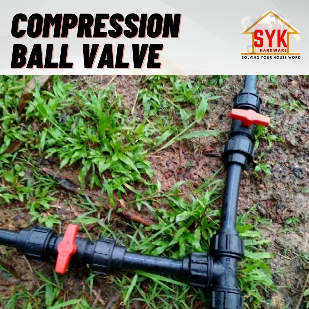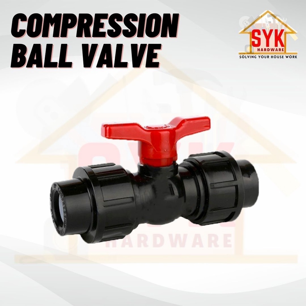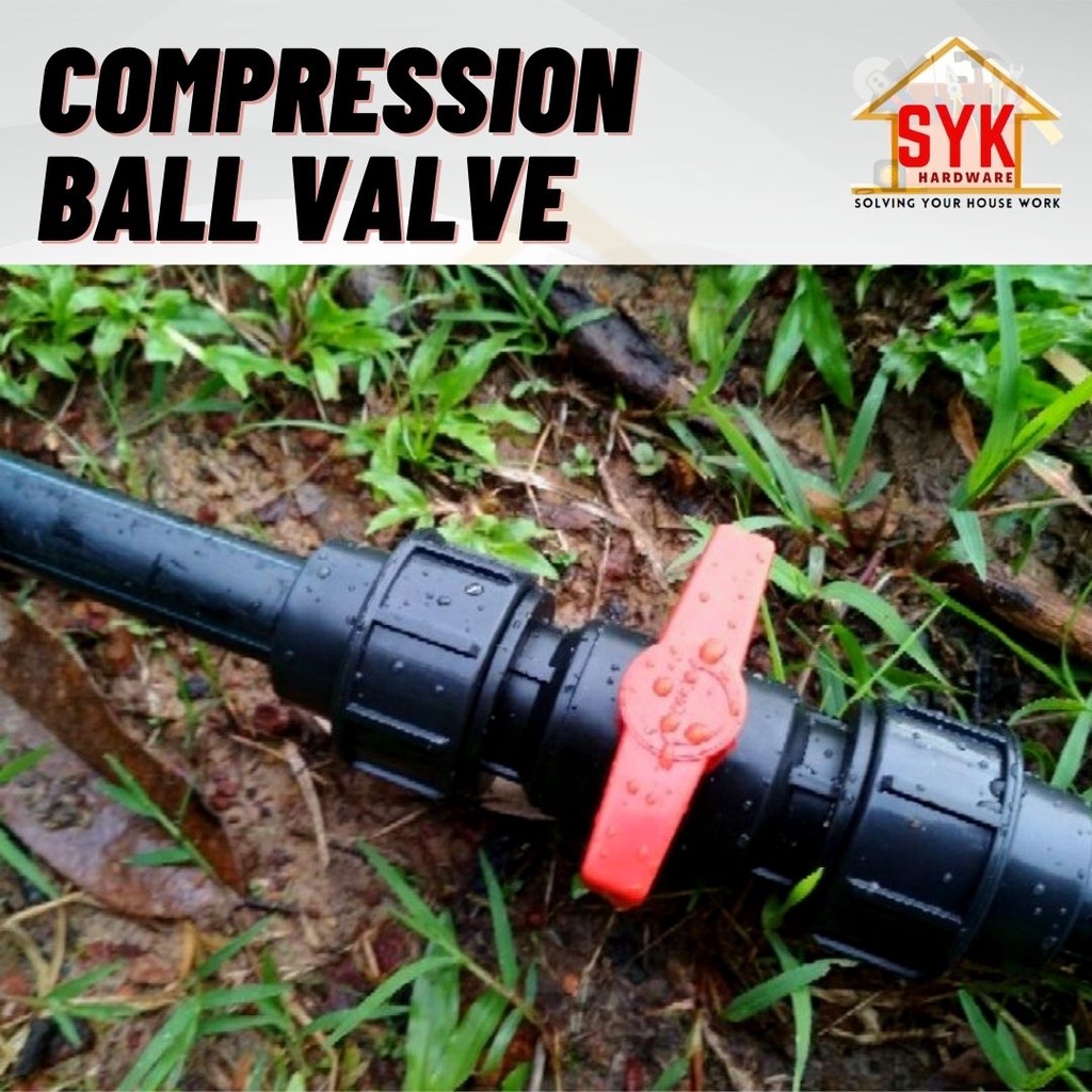 SYK Poly HDPE PP Ball Valve (20mm/25mm/32mm) Stop Cock Irrigation System Stop Tap Ball Valve Compression Ball Valve