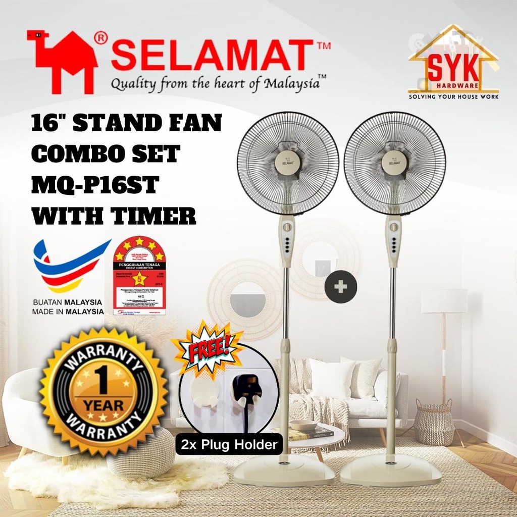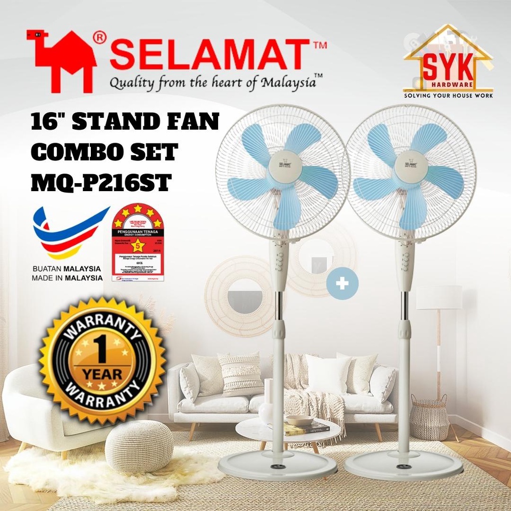 SYK SELAMAT (Combo Set MQ-P216ST/MQ-P16ST) 16" Stand Fan Kipas Berdiri Kipas Angin Berdiri Kipas Stand + Free Gift