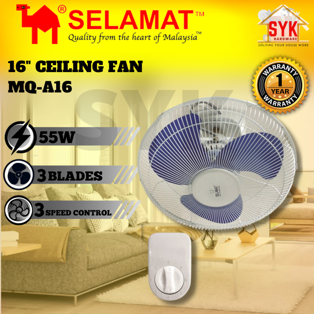 SYK Selamat MQ-A16 16 Inch Ceiling Fan Auto Fan 3 Speed Control Electric Fan Kipas Siling Kipas Angin