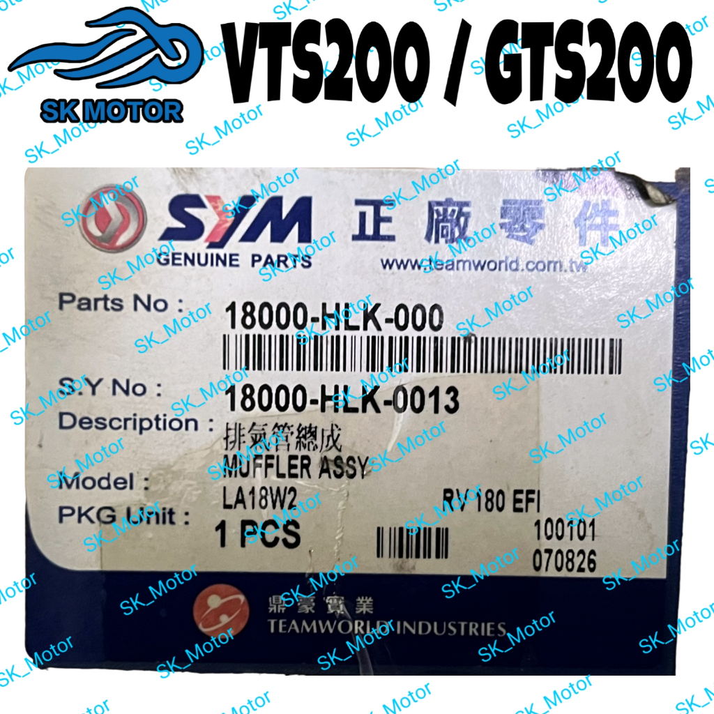 SYM GTS 200 / VTS 200 Original Muffler Exhaust Pipe Ekzos Ezo Standard STD 18000-HLK-000 GTS200 VTS200