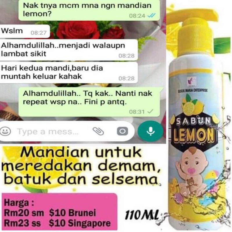 Sabun lemon susuk manja/mandian lemon/mandian selesema/shampoo lemon/demam