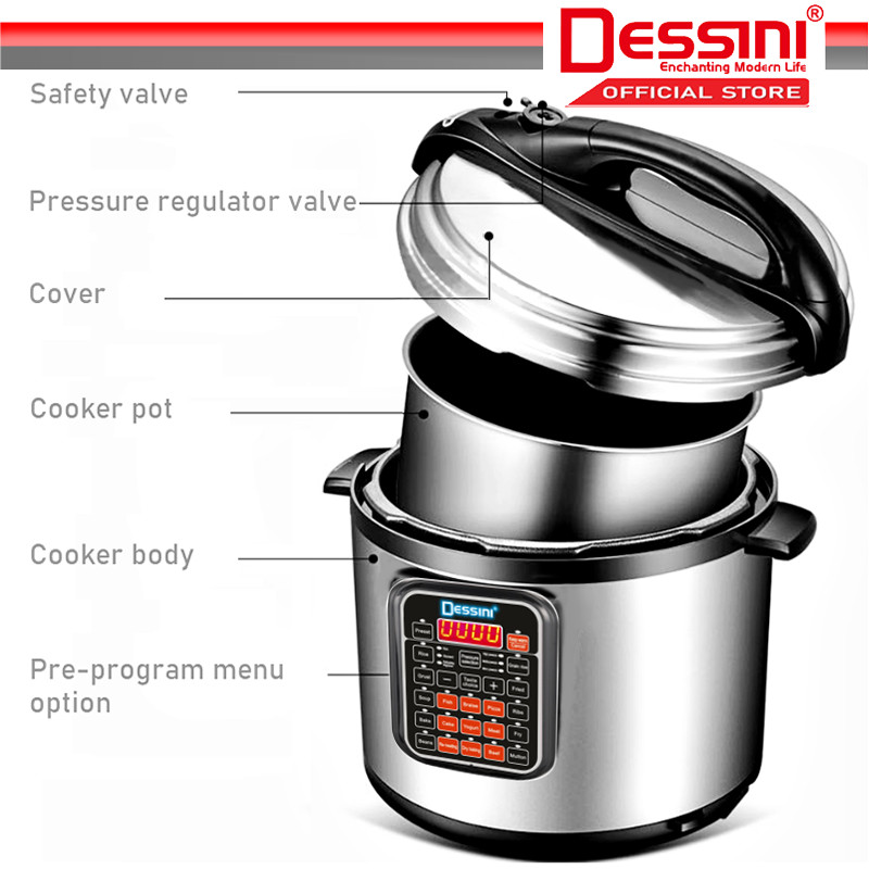 DESSINI ITALY 10 IN 1 Electric Digital Pressure Cooker Non-stick Stainless Steel Inner Pot Rice Cooker Steamer (8L)