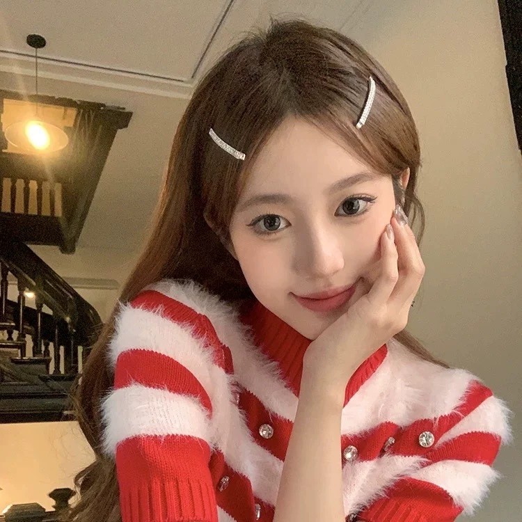 C-Bit Debut Girl Group Style Zircon Rhinestone Flat Clip Bangs Hair Clip Female Forehead Exquisite Side All-Match Hairpin MEVO