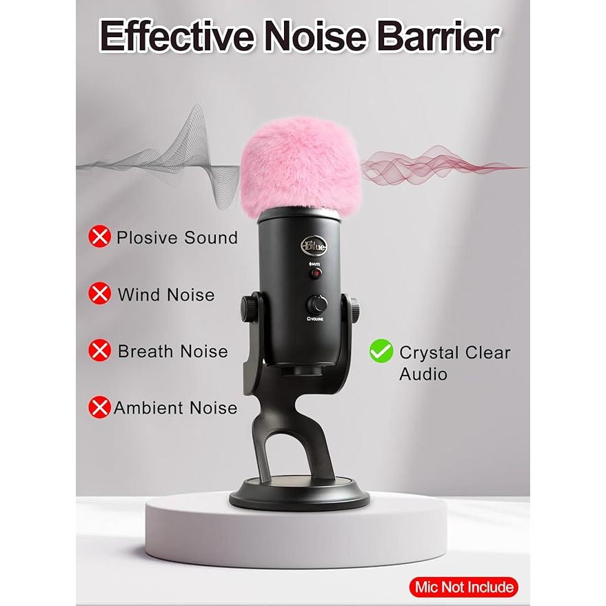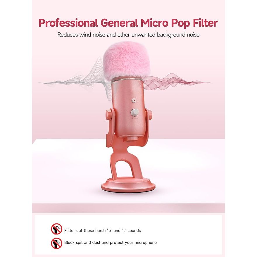Blue Yeti Pop Filter - Furry Mic Windshield Compatible with Most Mics, Razer Seiren V3 Mini Wind Muff, Fifine AM8 Wind Screen, HyperX SoloCast Pop Filter to reduce noise (Pink)