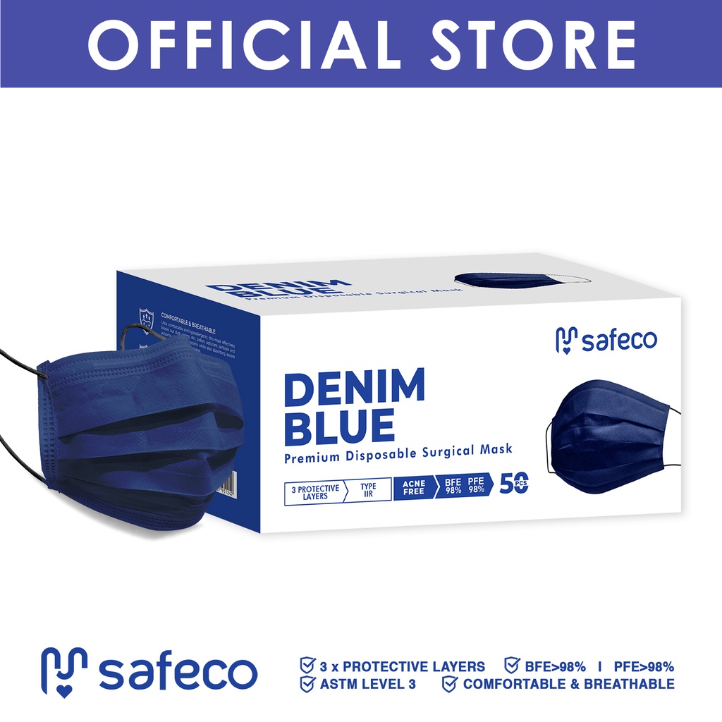 Safeco Denim Blue 3ply Disposable (50pcs/box)