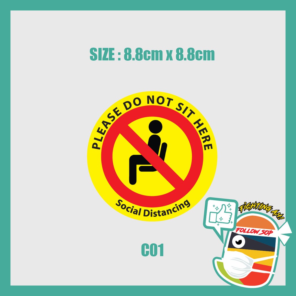 Safety Distance Sticker / Table sticker/ Sit sticker/ SOP sticker / Social distance sticker