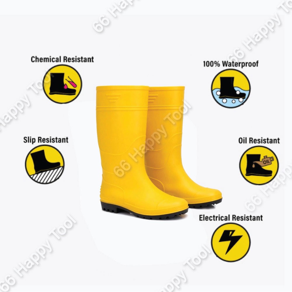 Safety Rubber PVC Boots Yellow Safety Shoe Kasut Getah Kuning Kasut Hujan High Cut Heavy Duty Resistance Anti Slip Boot