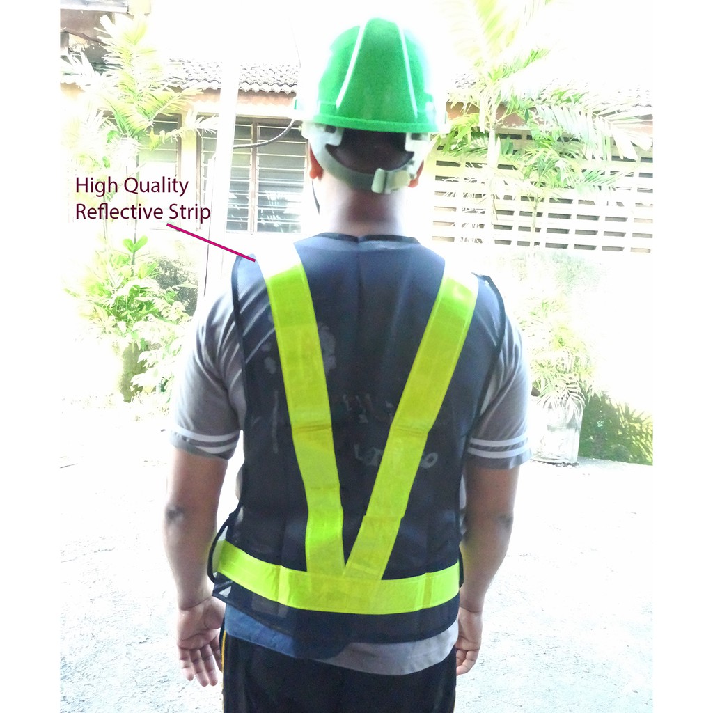 Safety Vest with V-Shape Reflective Strip and Black Fabric Model 716 Black
