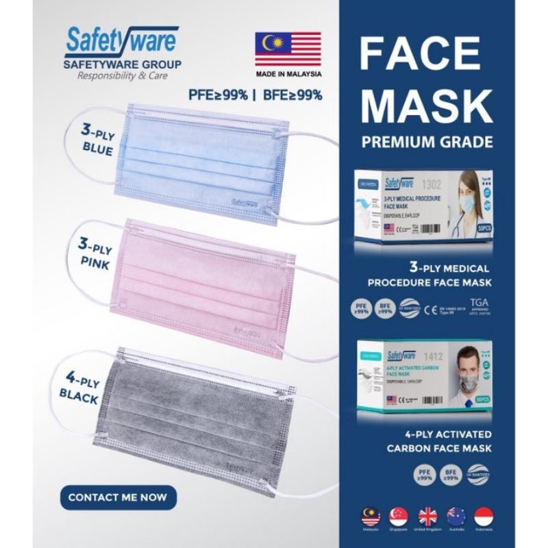 Safetyware 3 Ply Medical Procedure Face Mask 50 Pcs