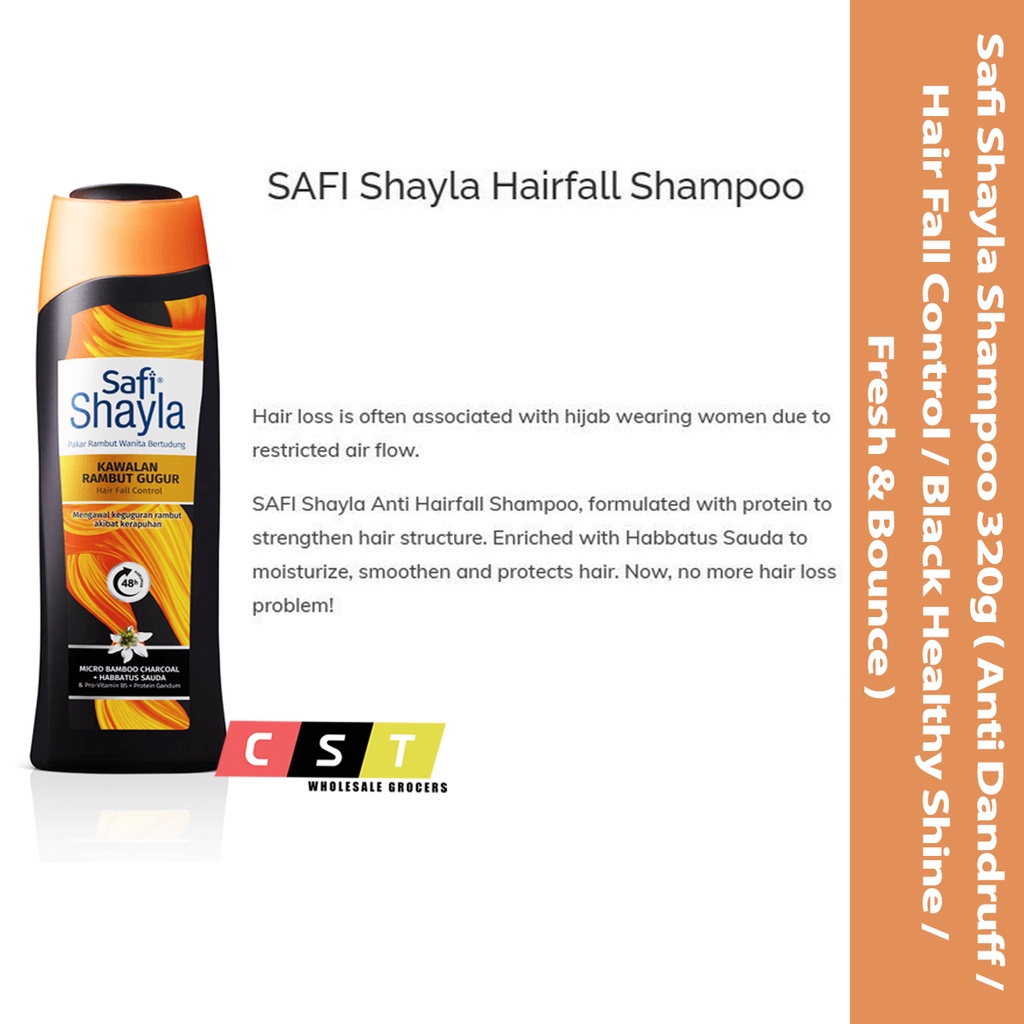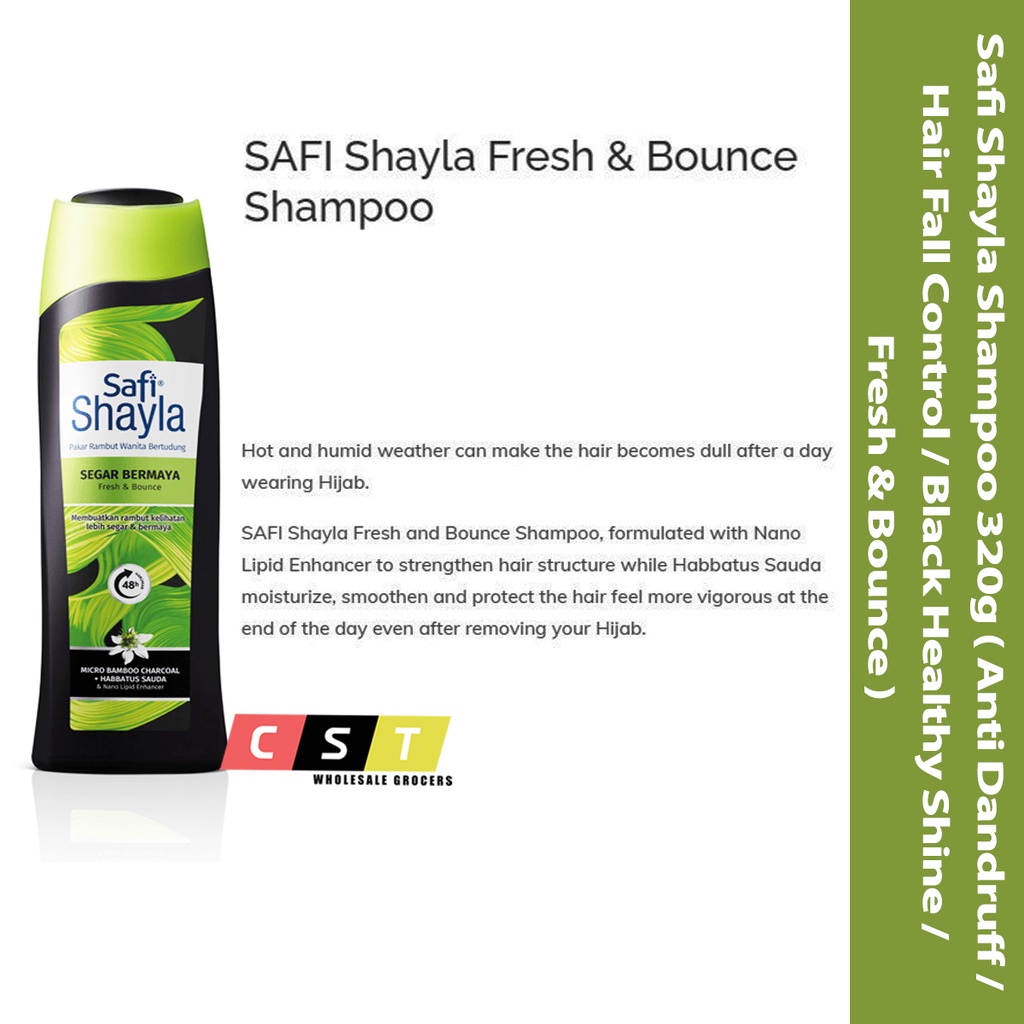 Safi Shayla Shampoo 320g (Anti Dandruff/Hair Fall Control/Black Healthy Shine/Fresh & Bounce)