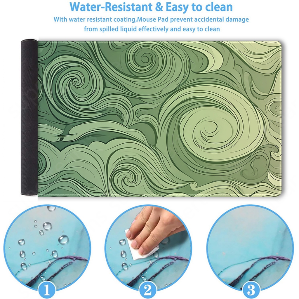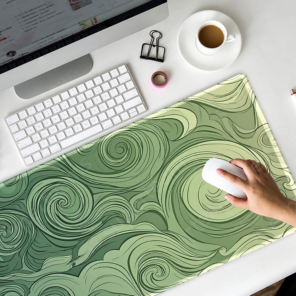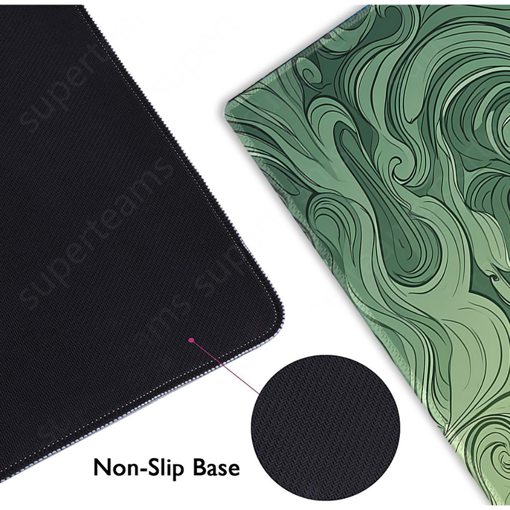 Sage Green Swirls Mouspad Desk Mat, Colorful Swirls Moss Green Mouse Pad Extended Mousepad Large Gaming Mousepad Stitched Edge Deskpad Deskmat