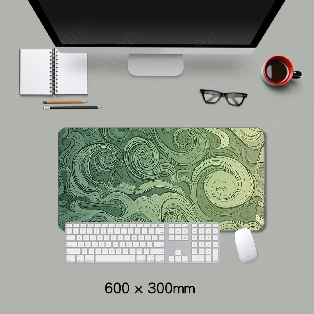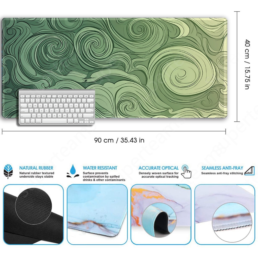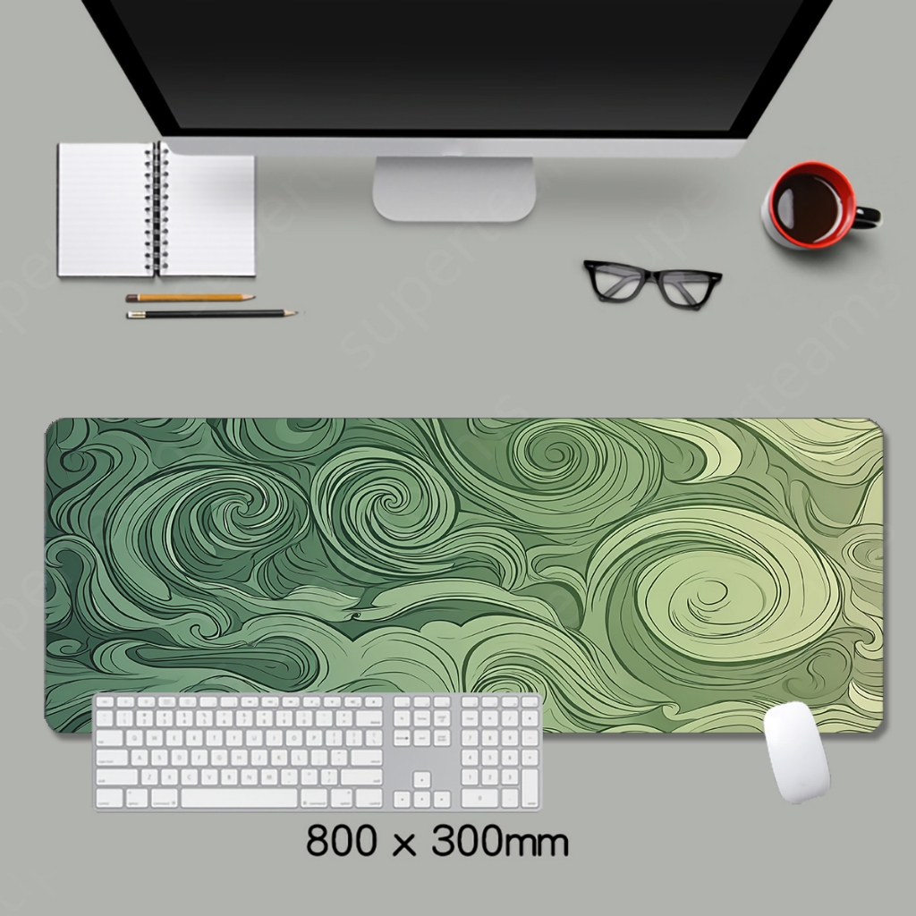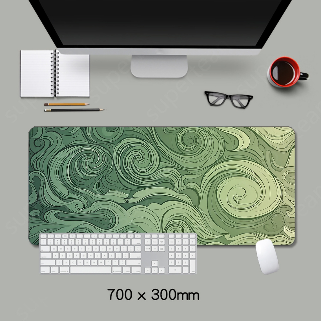 Sage Green Swirls Mouspad Desk Mat, Colorful Swirls Moss Green Mouse Pad Extended Mousepad Large Gaming Mousepad Stitched Edge Deskpad Deskmat