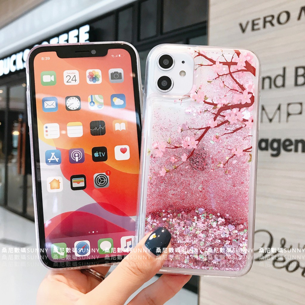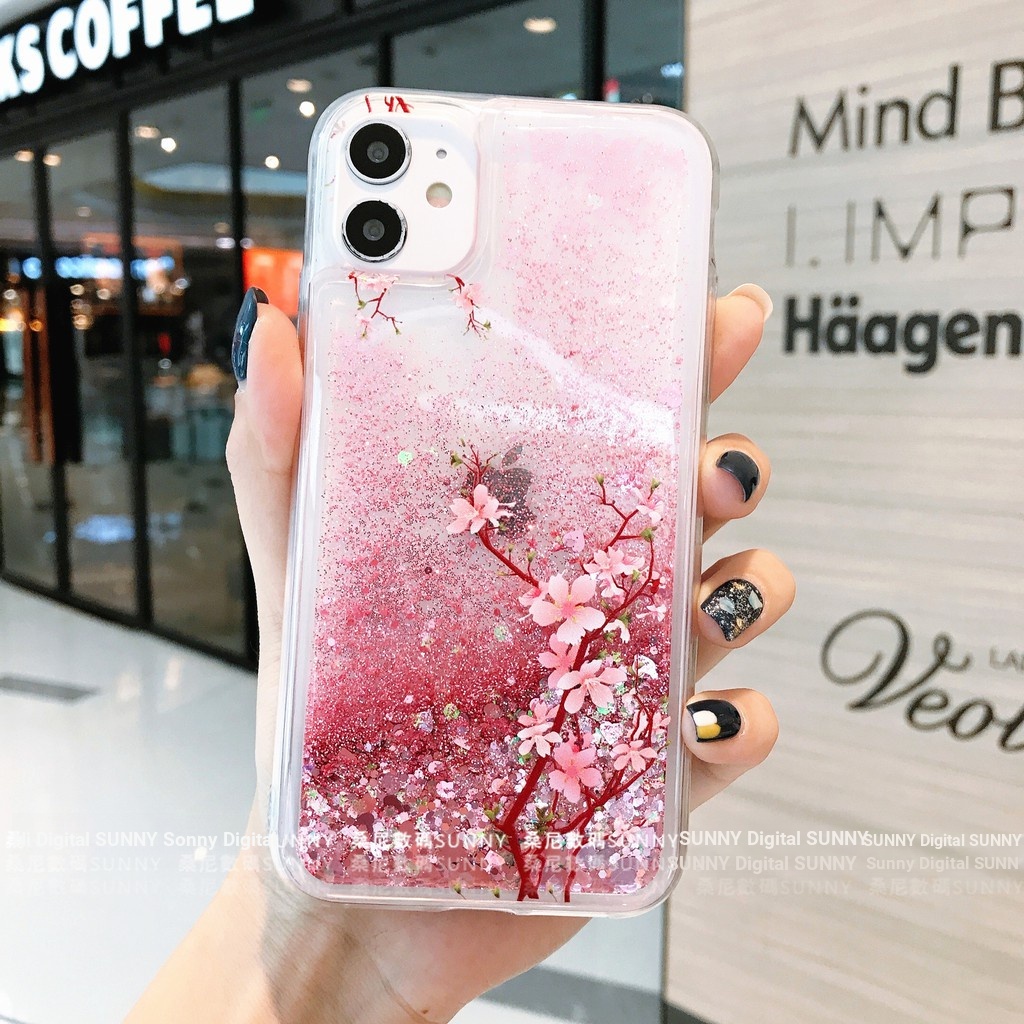 Sakura Glitter Phone Case Sequin Flower Small Fresh Shock-resistant Phone Case Suitable for IPhone 17 16 15 14 13 12 Pro Max