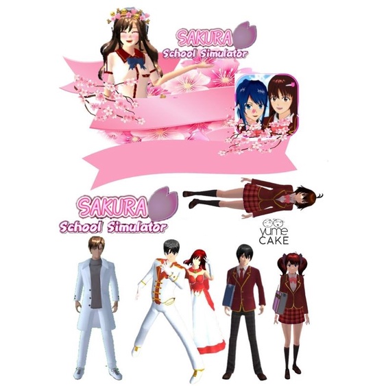 Sakura School Simulator Topper Cake Kawaii pink