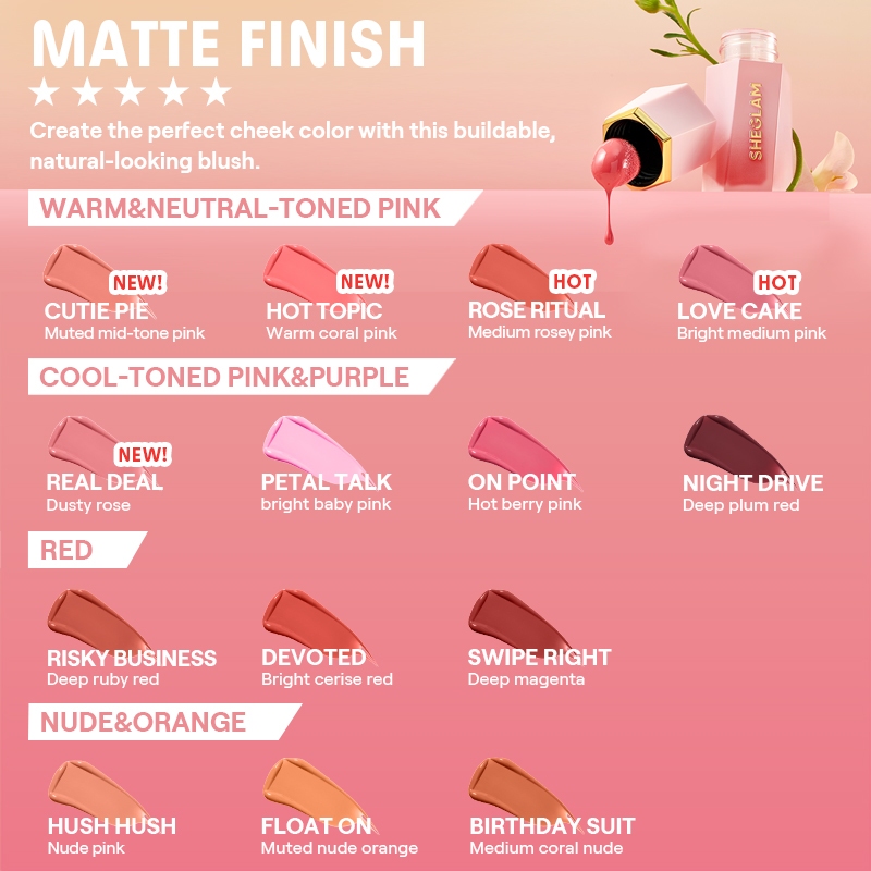 Sale | SHEGLAM Color Bloom Liquid Blush Matte Finish Love Cake Gel Cream Blush Memerah pipi