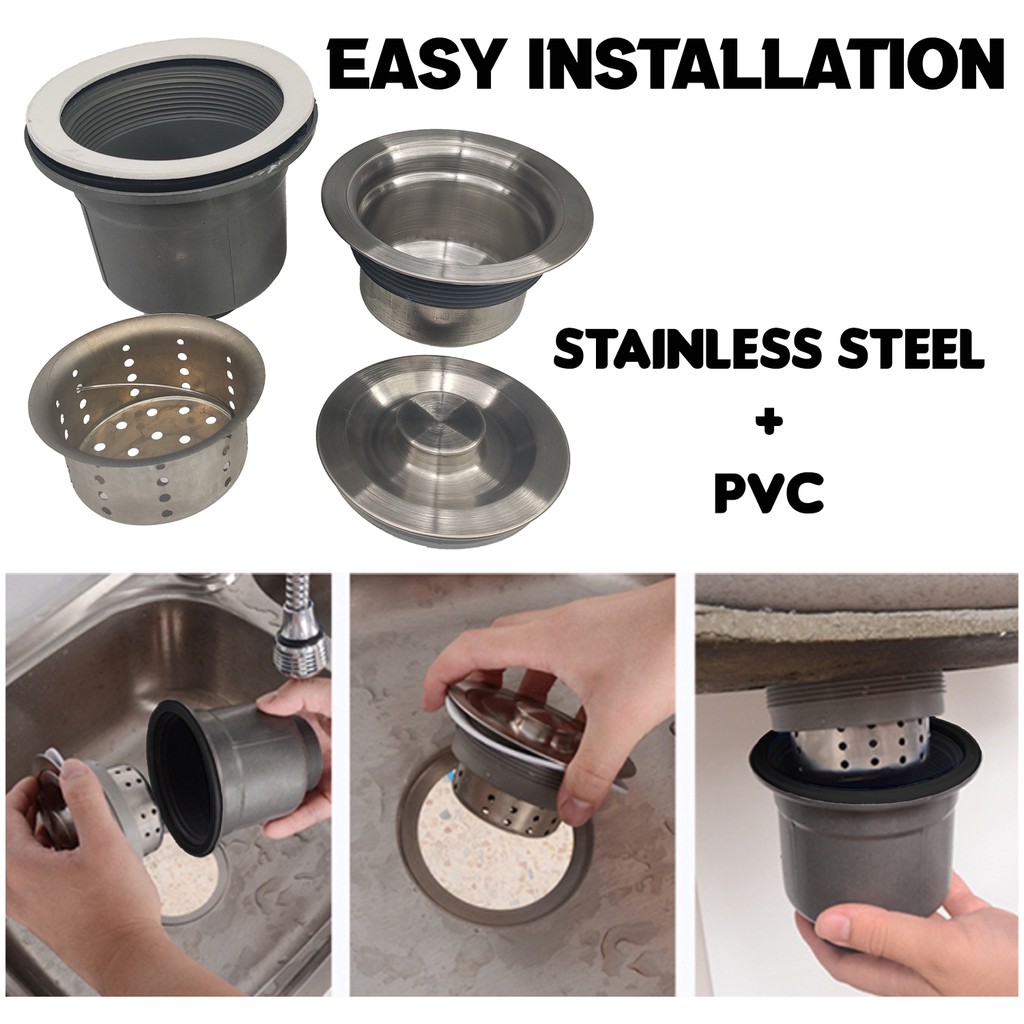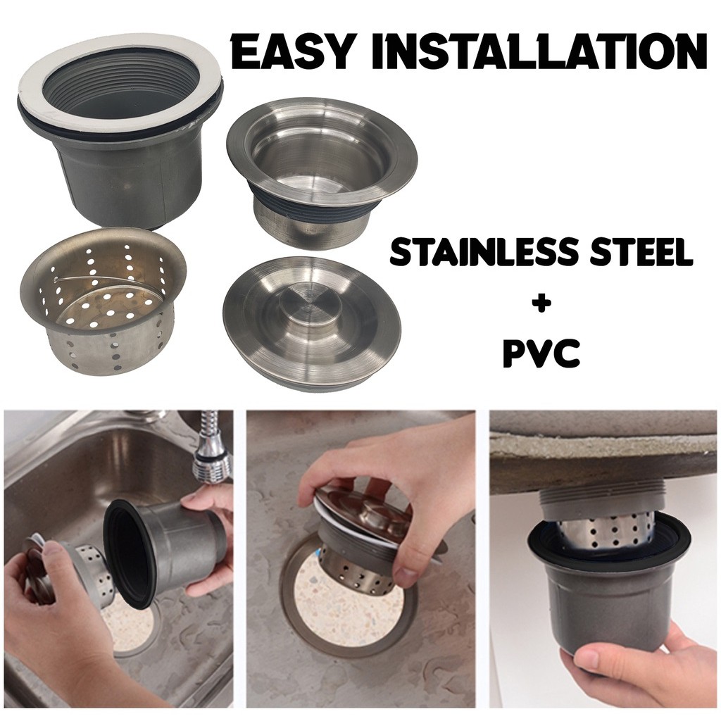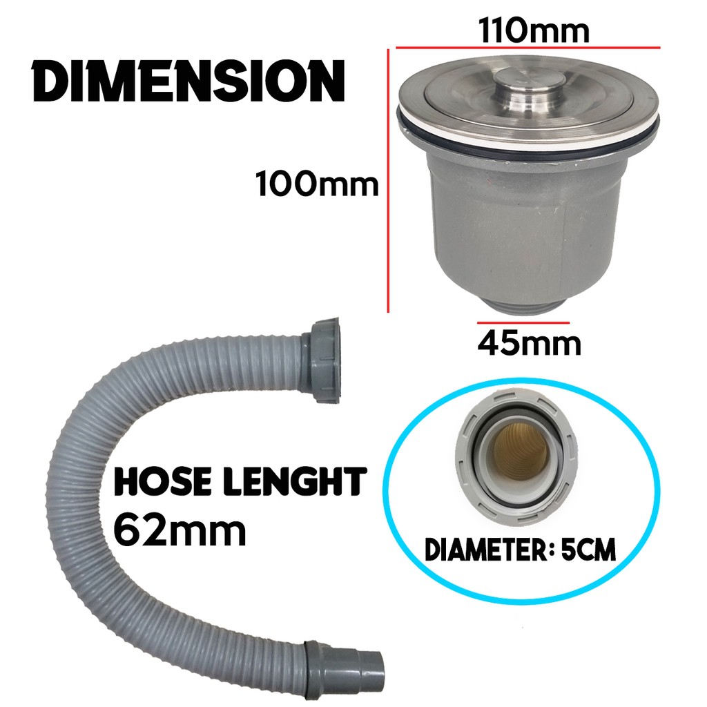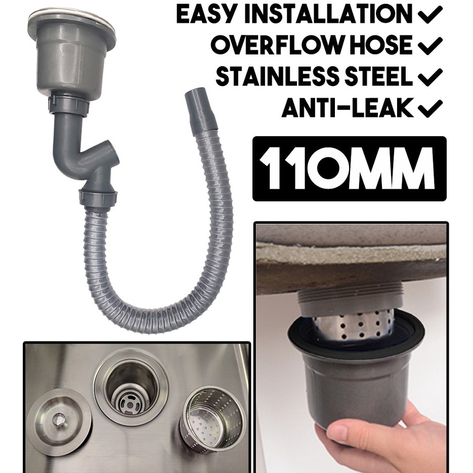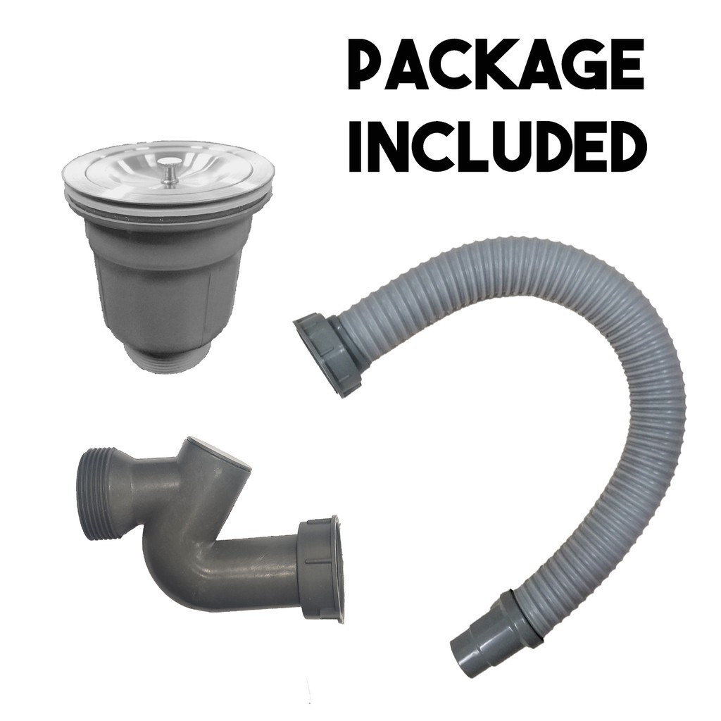 Salur Paip Sinki Dapur Stainless Steel+Pvc Draining Sink Set Single Tube Pipe Sink Strainer Basin Water Trap Drain Hose