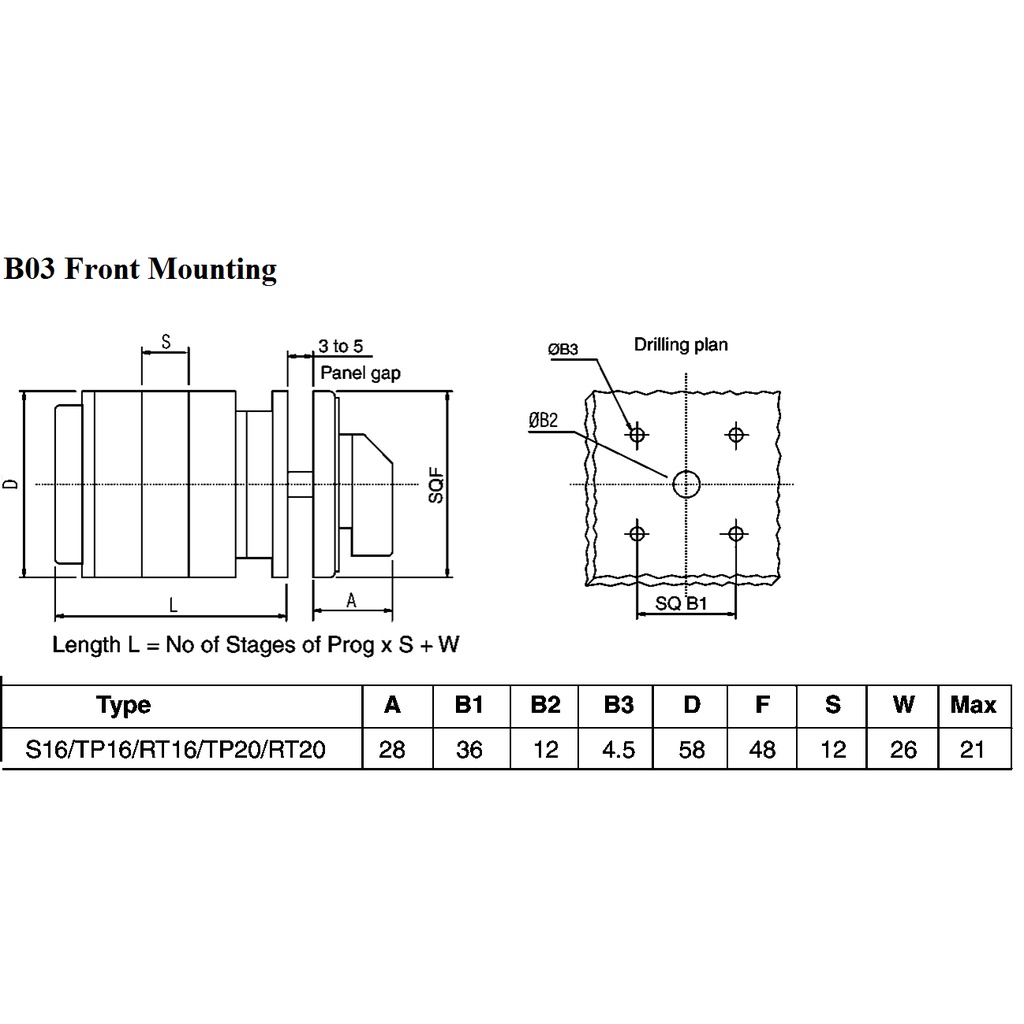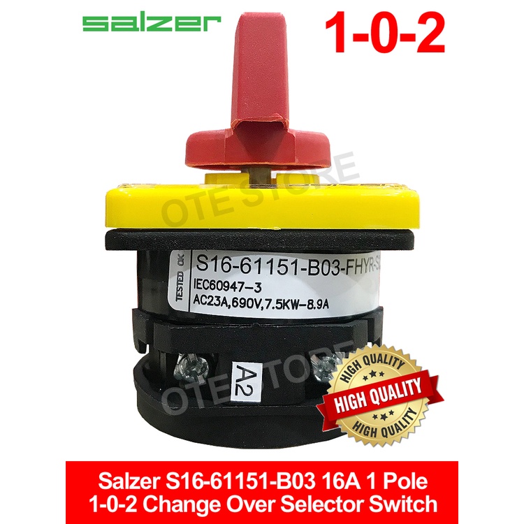 Salzer S16-61151-B03 16A 1 Pole 1-0-2 Change Over Selector Switch (48mm x 48mm)