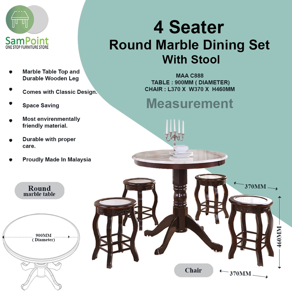 SamPoint 4 Kerusi Marmar Meja Makan Bulat | Kerusi Meja Makan Stok Sedia Ada + Penghantaran Percuma + Siap Pasang