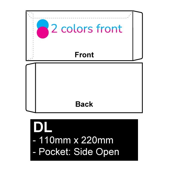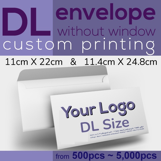 Sampul Surat DL size 4.5*9.5 Envelope custom printing service without windows 11cm X 22cm & 11.4cm X 24.8cm
