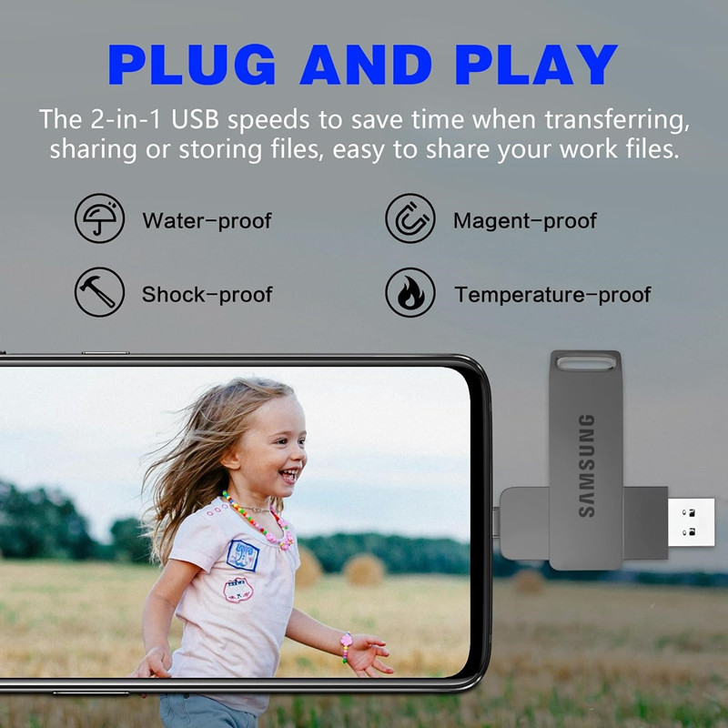 Samsung 1TB 2TB 2 In 1 Flash Drive High speed Metal USB Flash Drive Type-C U Stick SmartPhone MacBook Tablet