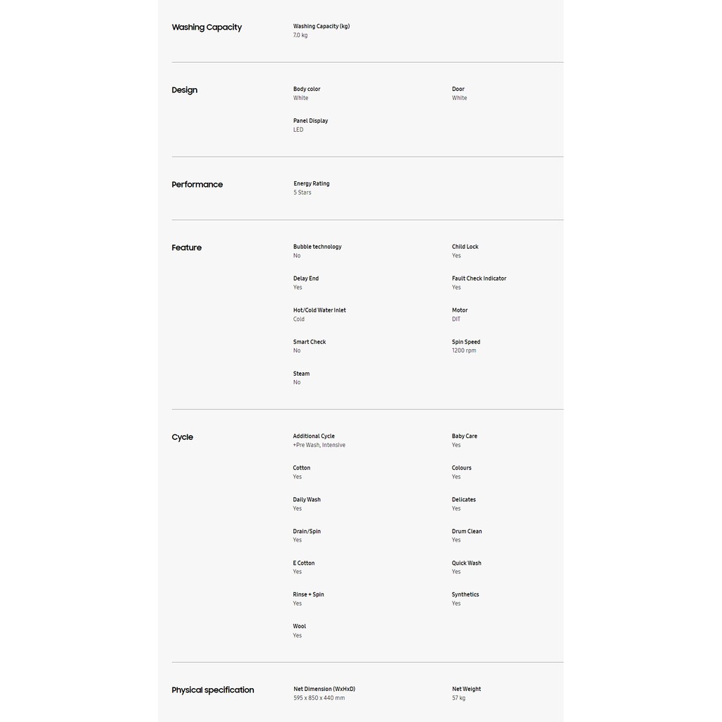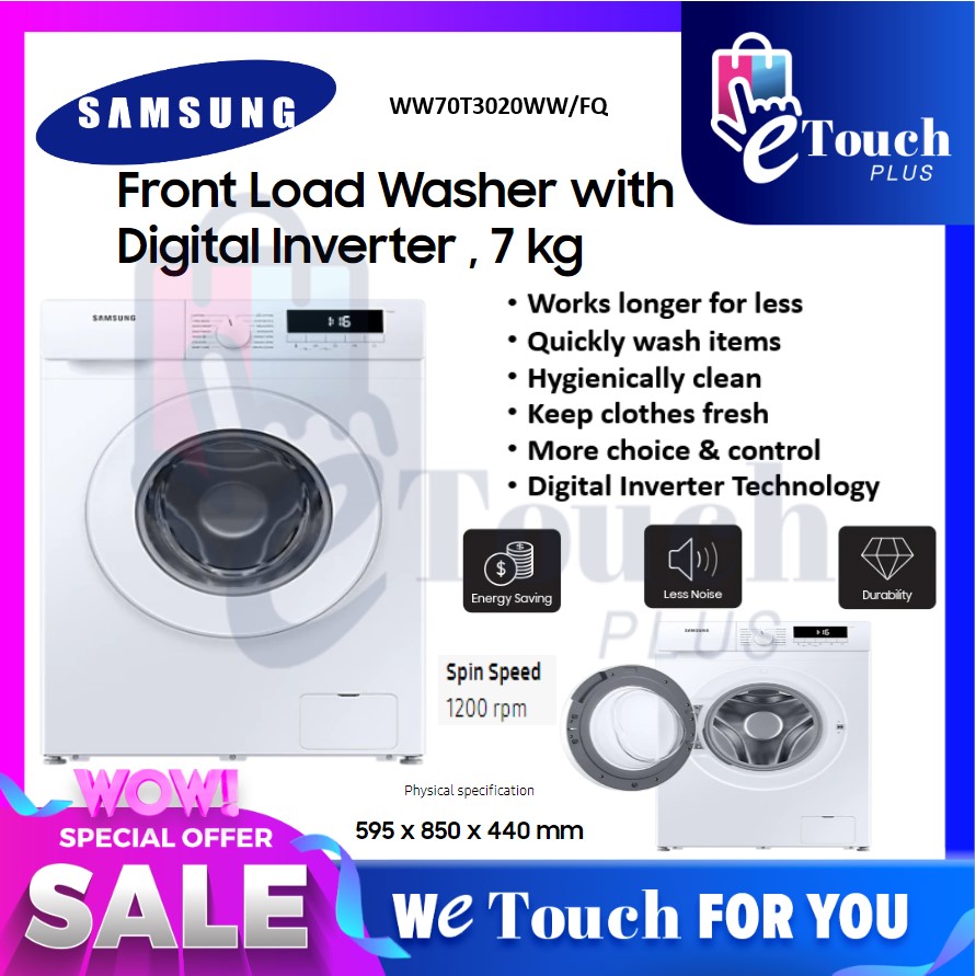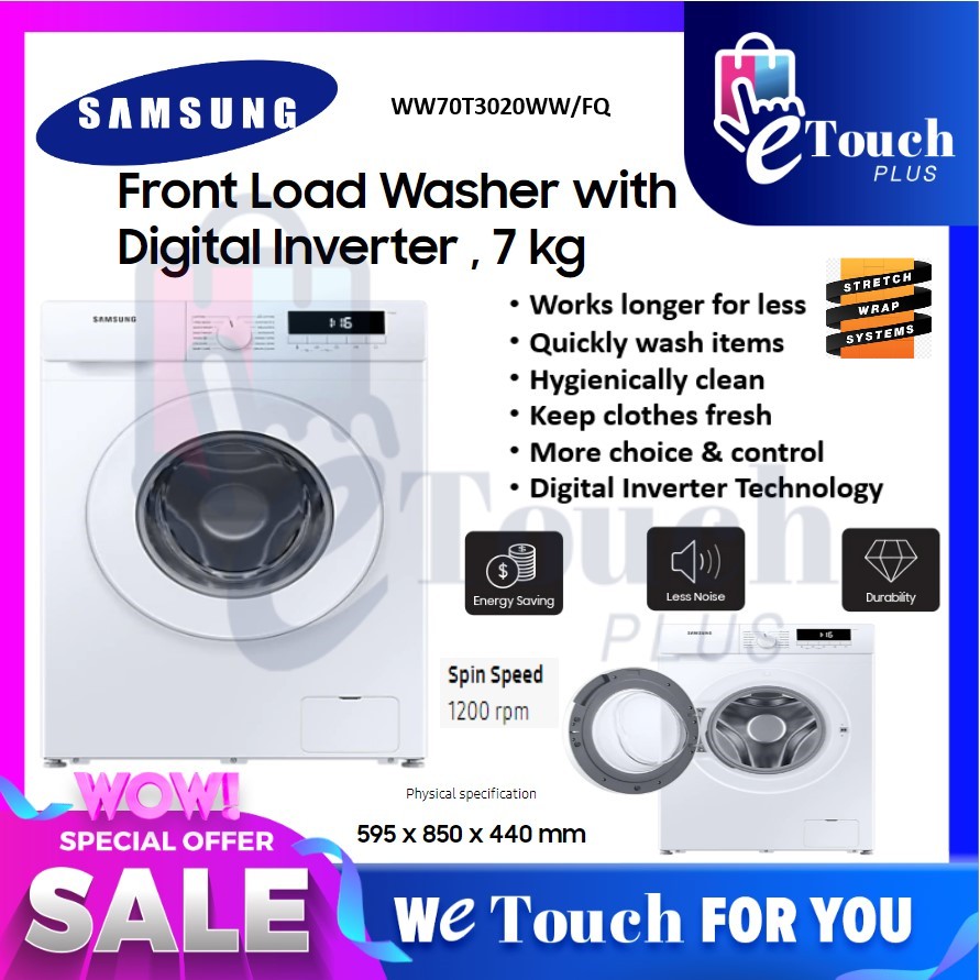 Samsung 7KG Digital Inverter Front Load Washer Washing Machine WW70T3020WW/FQ Mesin Basuh