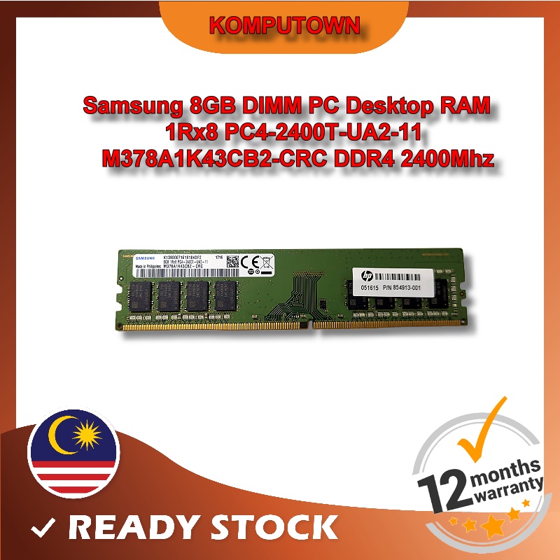 Samsung 8GB DDR4 2400Mhz CL17 1Rx8 288P UDIMM PC RAM (PC4-2400T-UA2-11 M378A1K43CB2-CRC 854913-001)