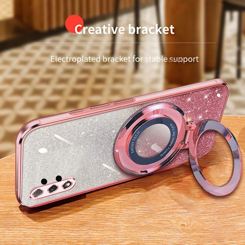 Samsung A04s a13 5g SM-A047F SM-A047F/DS SM-A047F/DSN SM-A047M Folding circular stand, transparent soft shell, electroplated phone case, with sparkling stickers casing