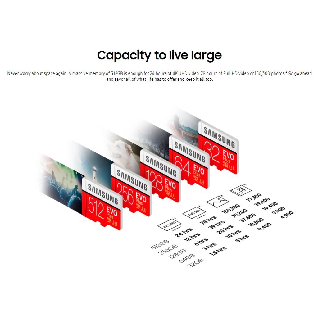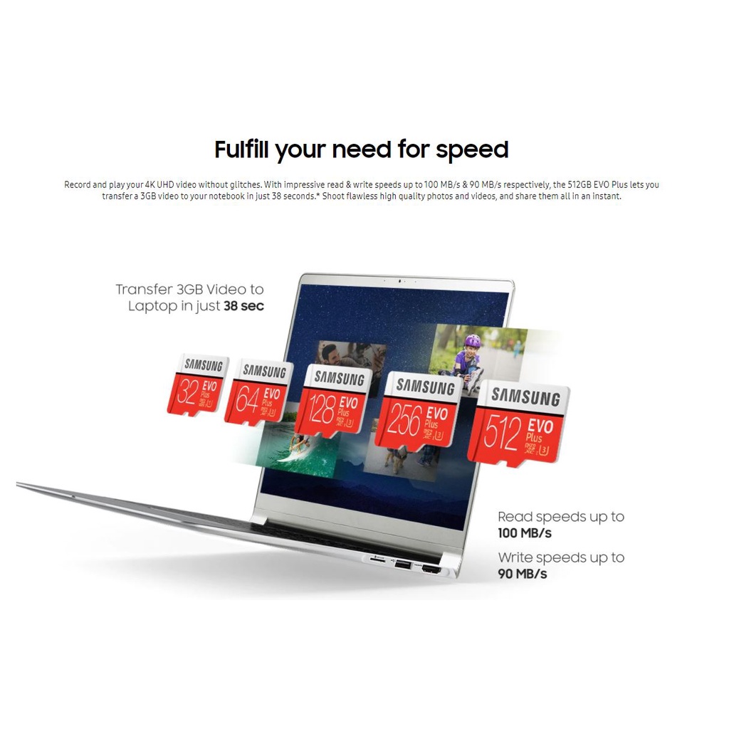 Samsung Evo Plus MICROSD 32GB 64GB 128GB 256GB 512GB Class 10 Memory Card Up to 130/120 MB/s with SD Card Adapter