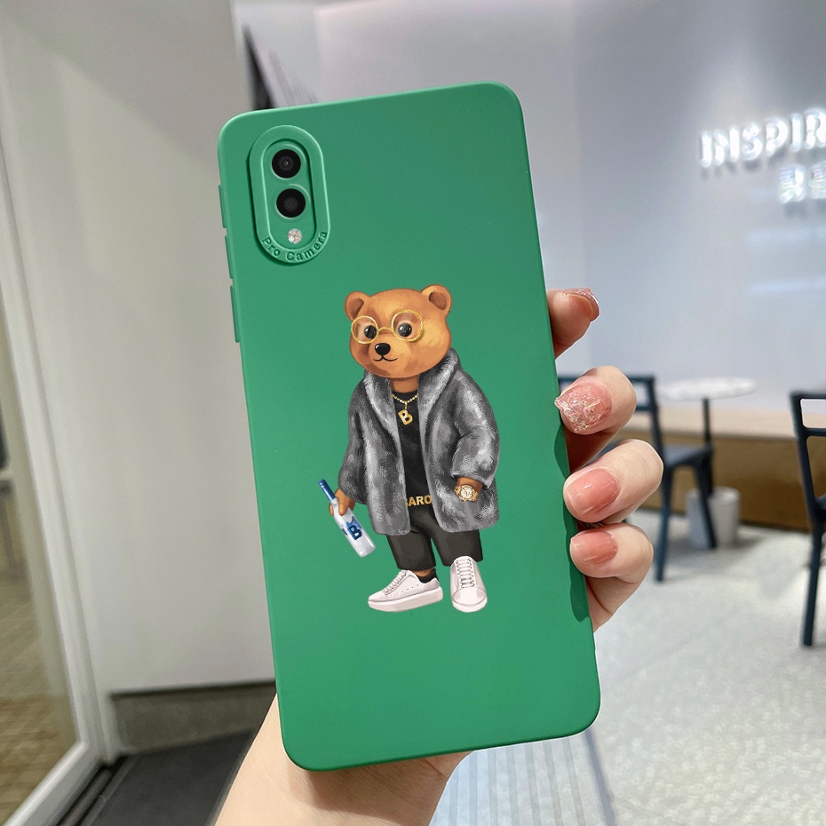 Samsung Galaxy A01 A02 Square Liquid Silicone Case Samsung SM-A015F/DS SM-A022F/DS A 01 A 02 Soft Cute Dinosaur Patterns Phone Cover