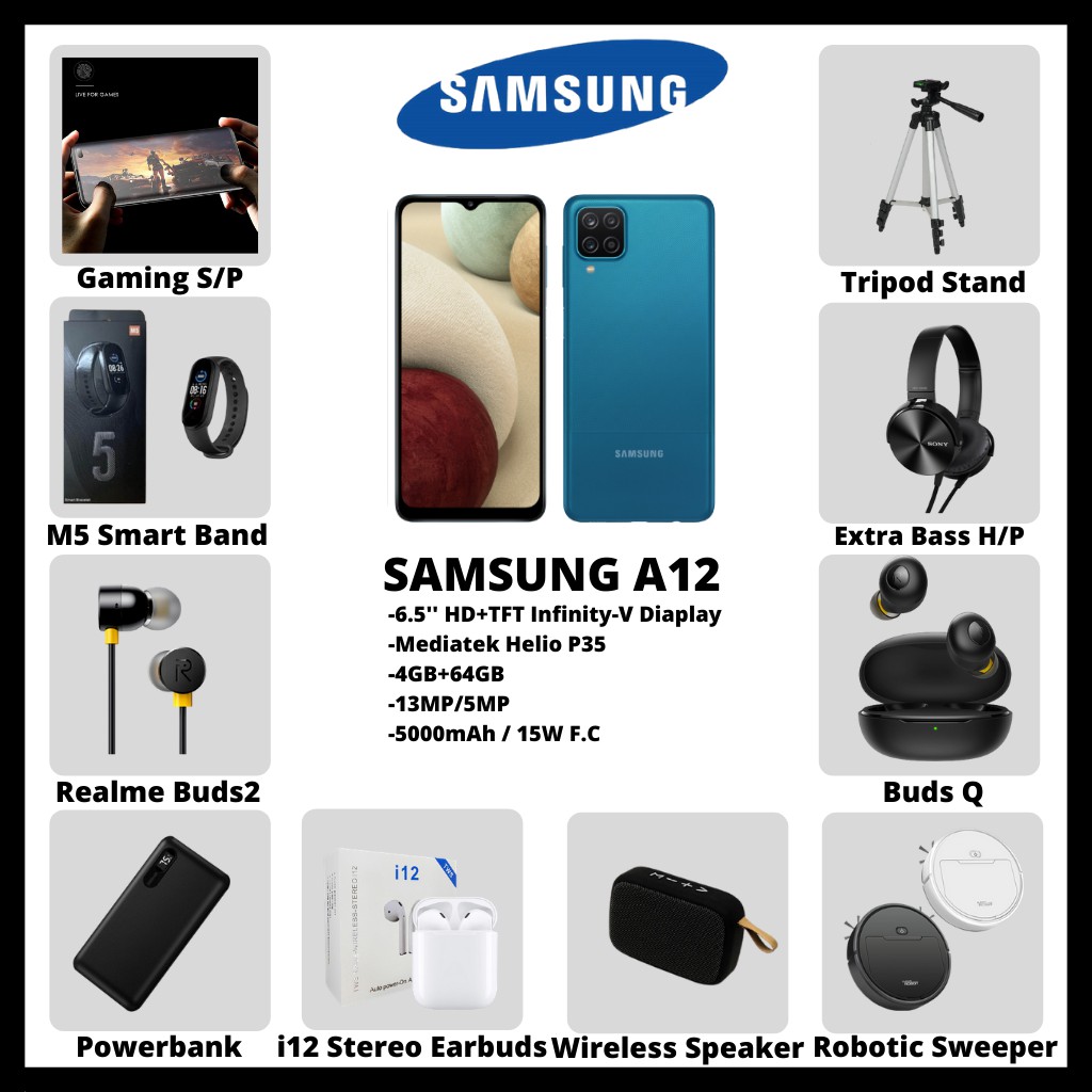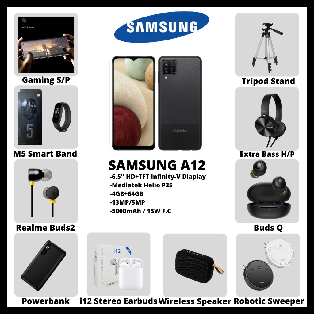 Samsung Galaxy A12 [ 6GB RAM + 128GB ROM ] 6.5-inch HD+ Infinity-V Display Mediatek Helio P35 [48MP/8MP] 50000mAh/15W