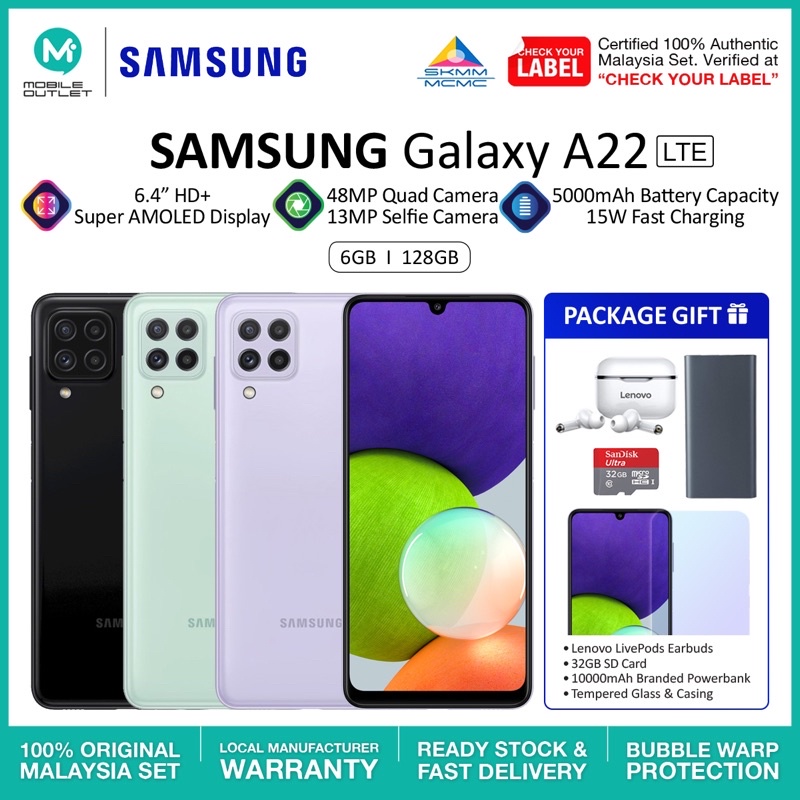 Samsung Galaxy A22 LTE 6GB/128GB (Original Samsung Msia)