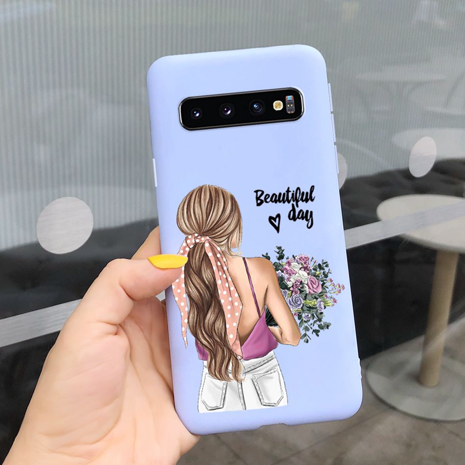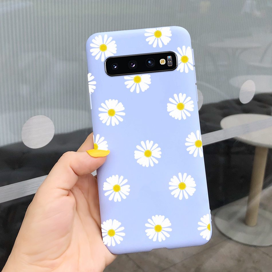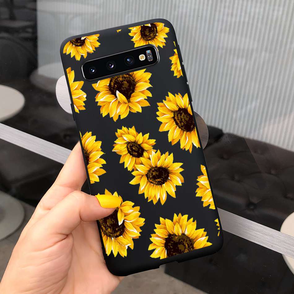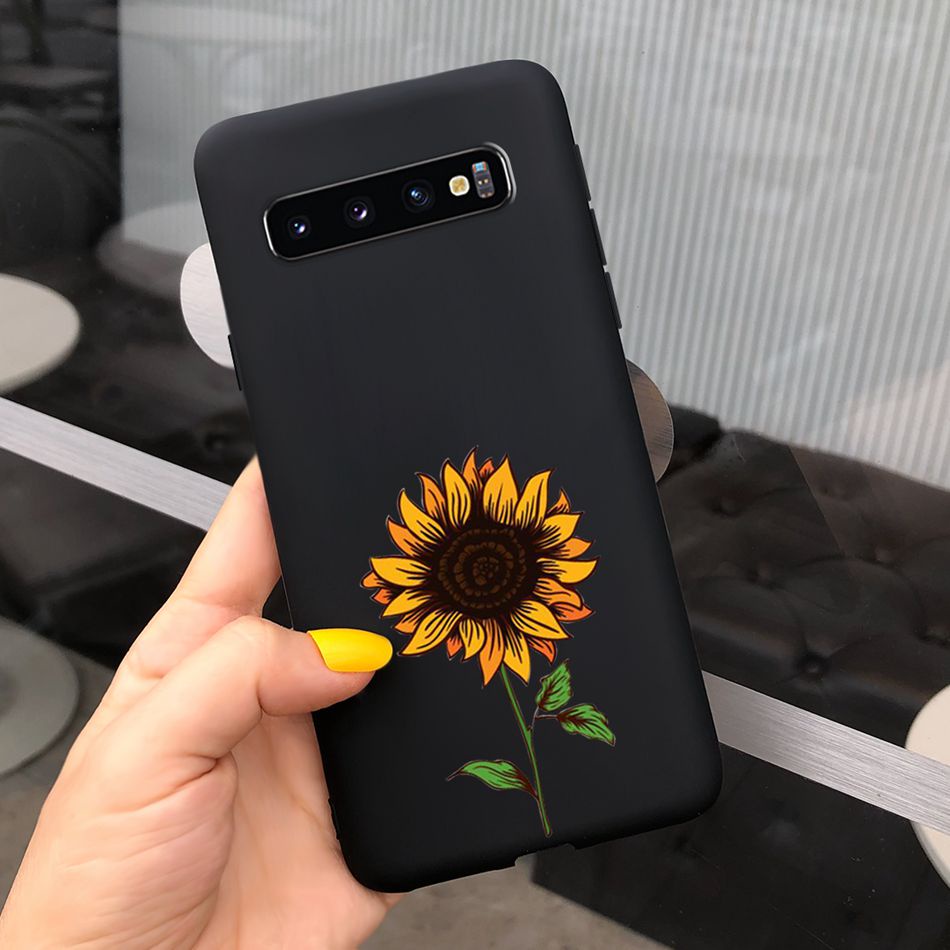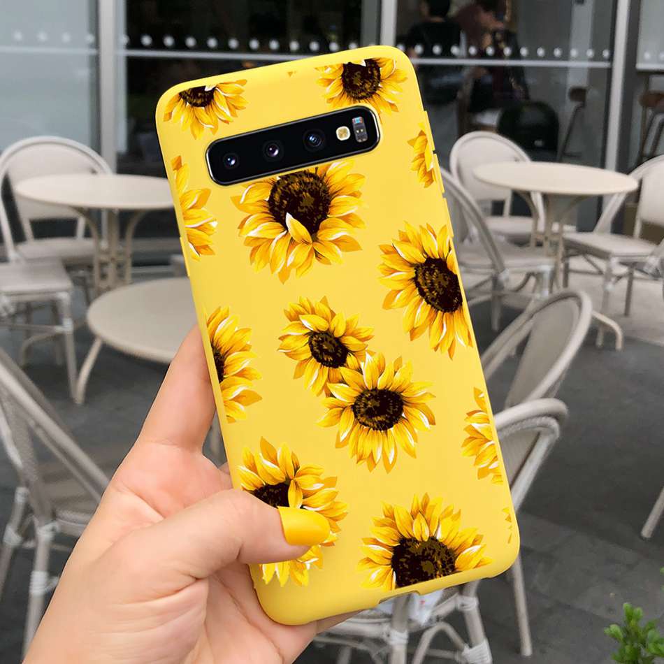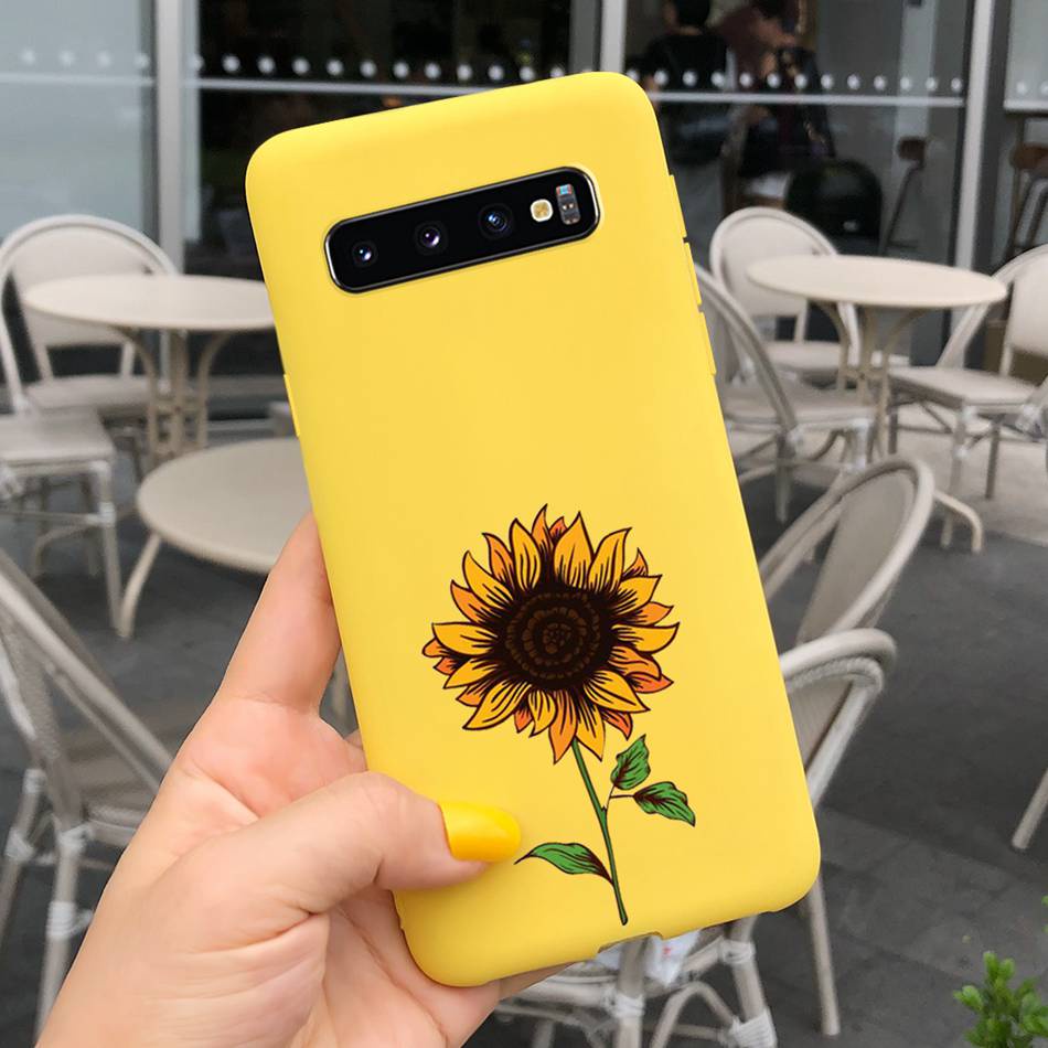Samsung Galaxy S10+ / S10 Beautiful Girl Sunflower Pattern Phone Case Samsung S 10 S10 Plus Candy Color Silicone Soft Casing