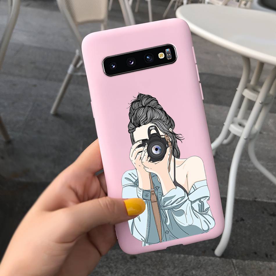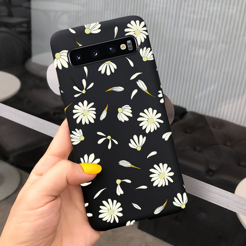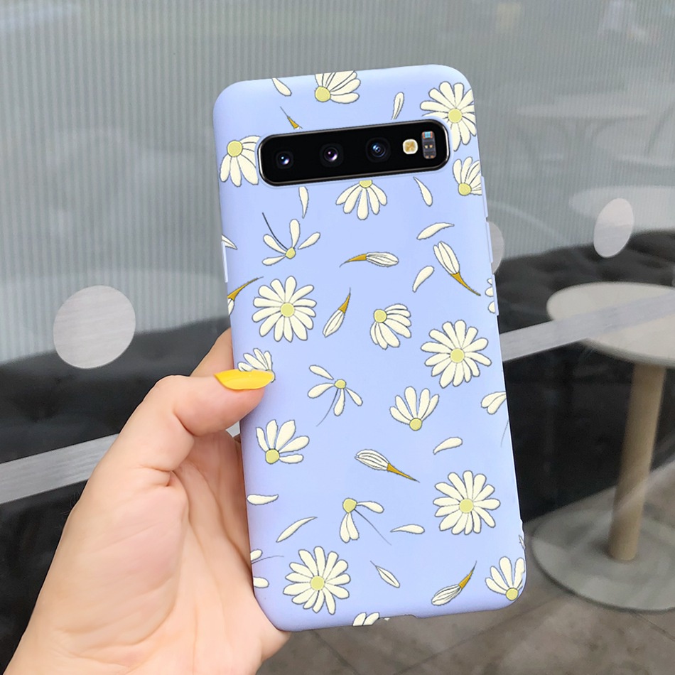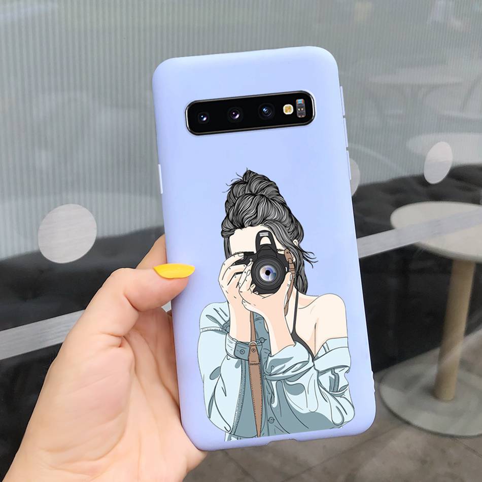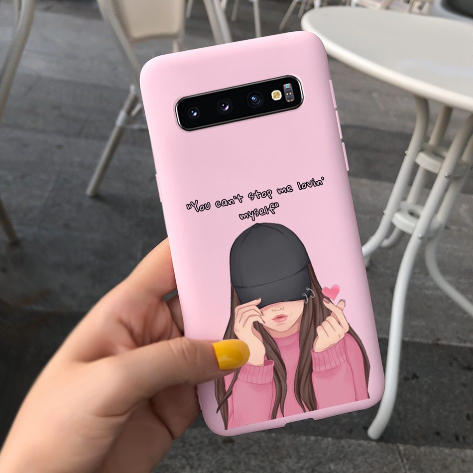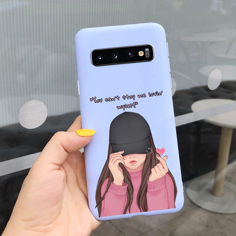 Samsung Galaxy S10+ / S10 Beautiful Girl Sunflower Pattern Phone Case Samsung S 10 S10 Plus Candy Color Silicone Soft Casing