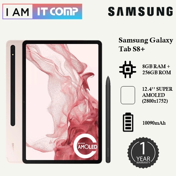 Samsung Galaxy Tab S8 Plus ( S8+ / S8 + ) / 12.4'' / Wi-Fi Version Tablet / 8GB RAM / 256GB ROM | Graphite / Pink Gold