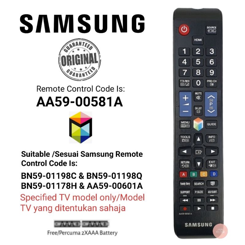 Samsung Plasma LED LCD TV Flat Panel Remote Control BN59-01198Q OR AA59-00581A (Original or Replacement Remote Control)