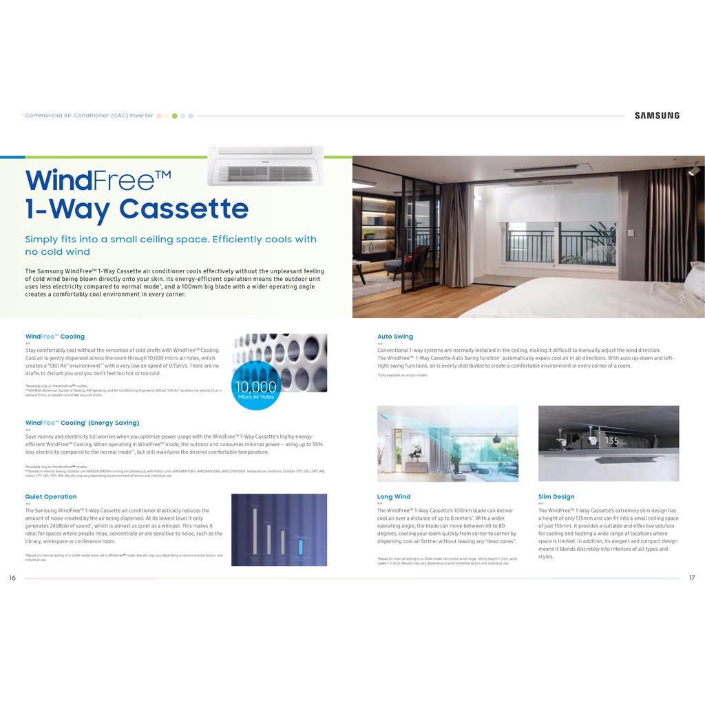Samsung WindFree 1-Way Cassette Air Conditioner 1.5HP / 2.0HP / 2.5HP Inverter R410a AC-TN1DKC