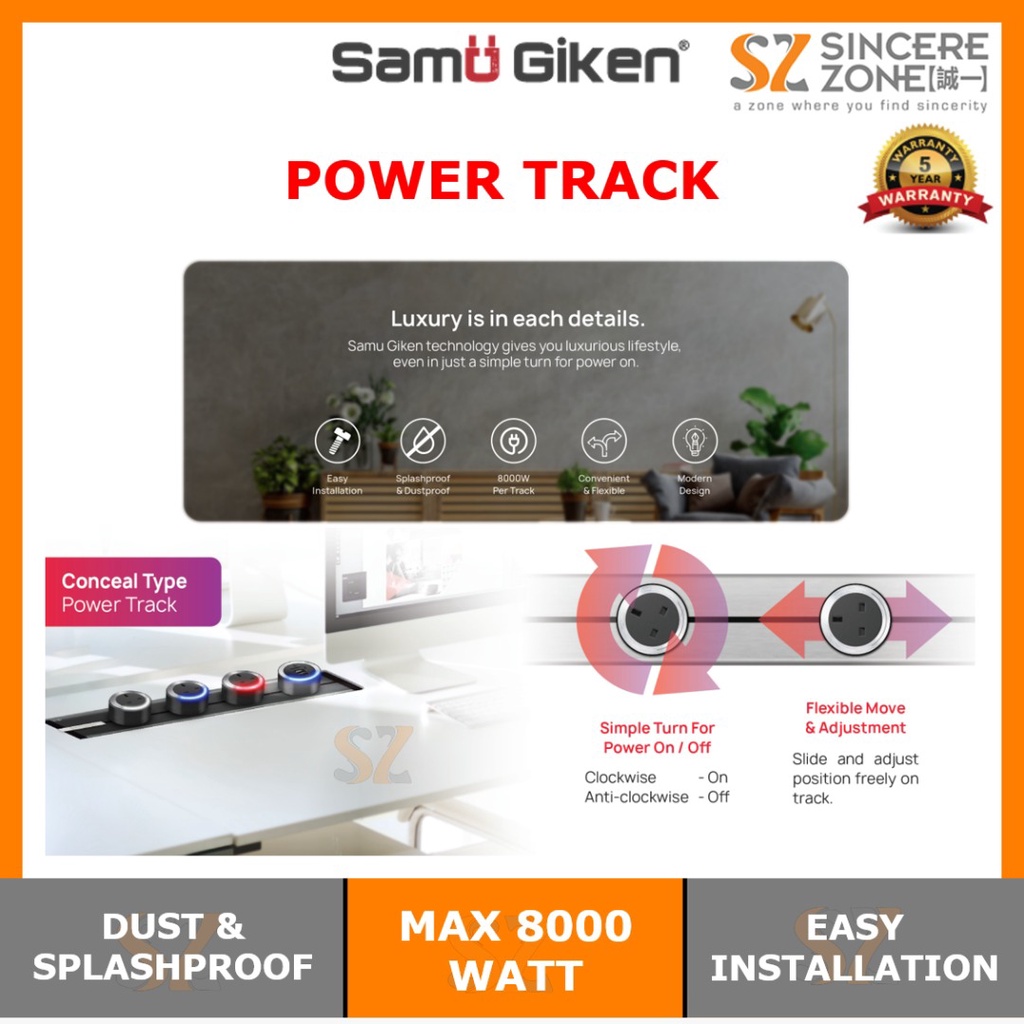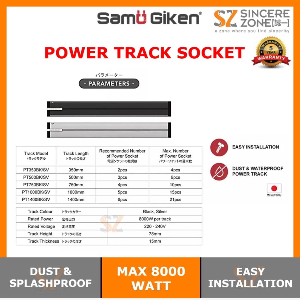 Samu Giken Premium Power Track BLACK / SILVER 32A / 8000W (350MM - 1400MM) / Power Track / Grandeur Series /Conceal