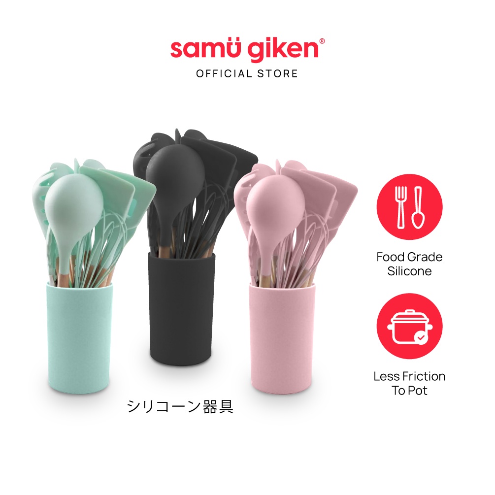 Samu Giken Silicone Cooking Utensils Set Non-Stick Wooden Handle (11 Pcs)